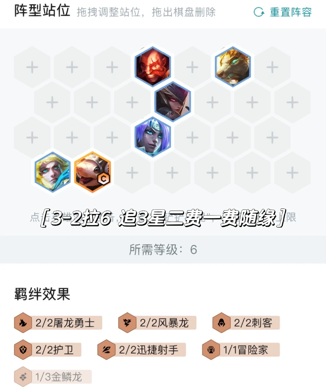 3-2拉6需要把所有牌都找到,1费2费能抽到二星最佳,然后卡40-50利息追三星出来,最迟4-4左右需要追出三星老鼠和巴德,5阶段补韦鲁斯和巴德。
