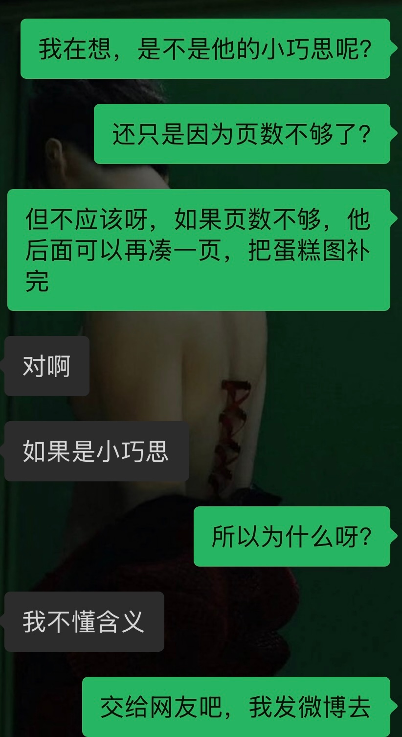 发现一个“小巧思”,倒数第二页蛋糕图只有一半,最后一页是透明的,博主这样放刚好把另一半蛋糕投射上面补完整是契合主题的“倒影”,也有人说“是有了我们才完整” … 我哭死啊💧