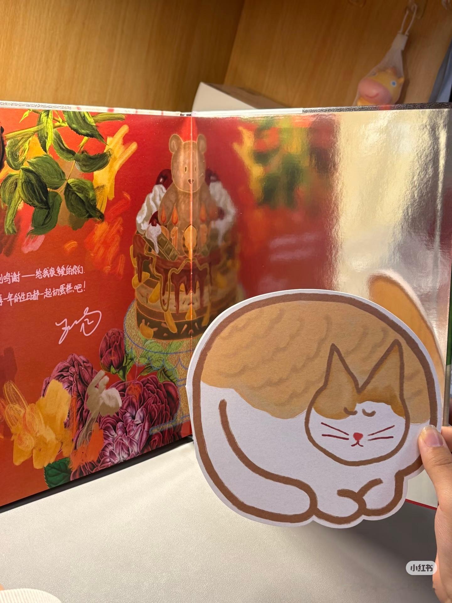 发现一个“小巧思”,倒数第二页蛋糕图只有一半,最后一页是透明的,博主这样放刚好把