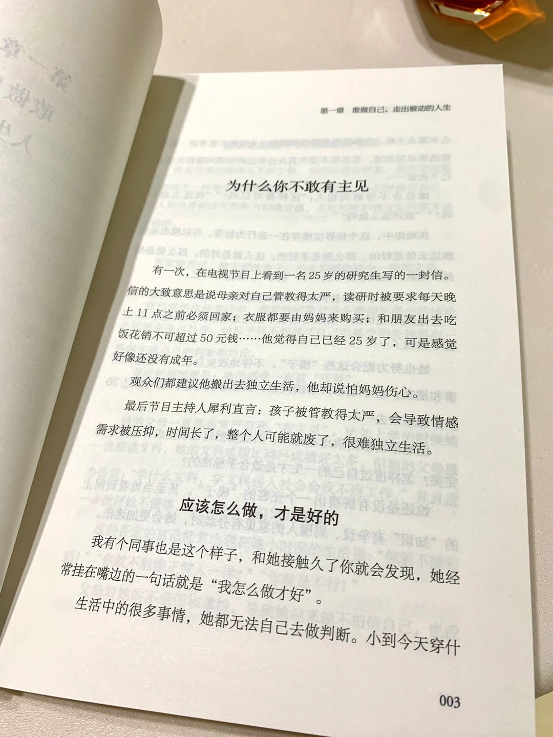 解决方法——想要真正地成长,就要直面自己内心的恐惧,不要活在“应该”的框架里,没有你“应该”做什么,你“应该”成为什么样的人,只有“你想”,“你想”做什么,“你想”成为什么样的人。