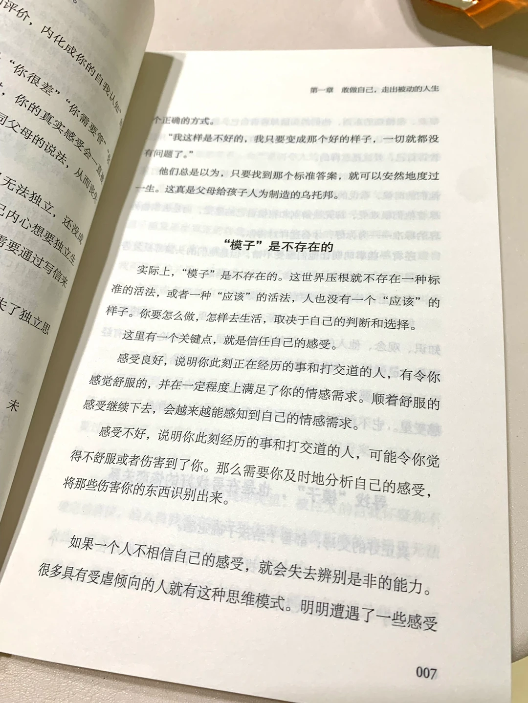 解决办法——实际上,“模子”是不存在的。这里有一个关键点,就是信任自己的感受。真正好的父母,都善于给孩子确定感。小时候没有得到的确定感,可以由你自己来创造,从肯定自己的感受开始。