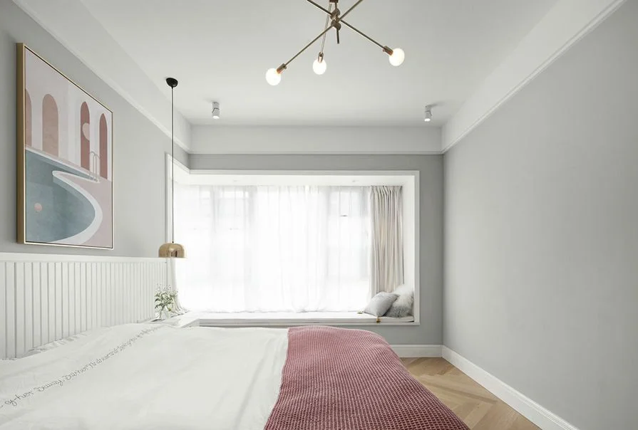 🌈卧室整个空间白色和灰色搭配,加了原木的家具,清新有自然,简洁又漂亮,看着都很喜欢。