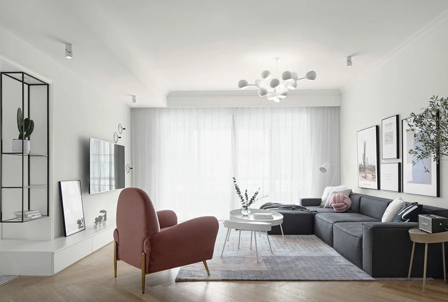 🌈柔软的沙发+纯白色的小茶几,为了使氛围没那么枯燥,加了一把红色的沙发椅,明艳靓丽让整个空间活跃起来了。布局合理,搭配协调,显得格外干净清爽~