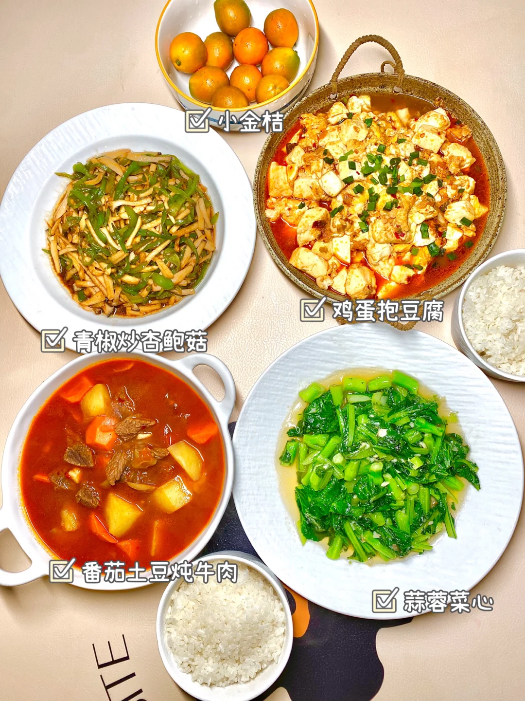 2⃣️豆腐抱蛋、青椒炒杏鲍菇