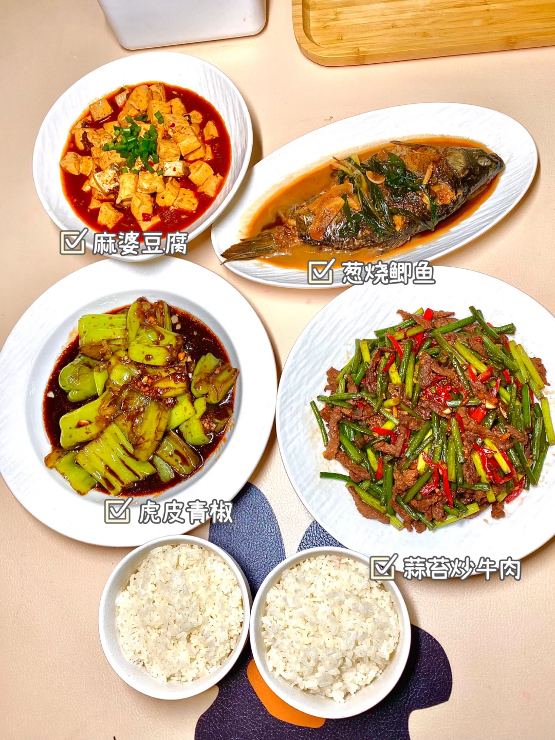 4⃣️麻婆豆腐、葱烧鲫鱼