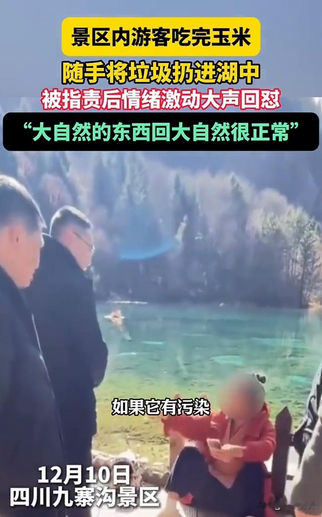 九寨沟扔玉米棒事件吵翻!“大自然的东西回自然”错在哪?🤔 我觉得九寨沟游客扔玉米棒互怼!这辩解我看懵了😓 12月10日,四川九寨沟五花海的栈道上上演了一幕争议画面——一名男子啃完玉米后,随手将玉米棒扔在水池岸边,被其他游客当场制止,不料却引发激烈争执‼️ 视频里男子情绪激动,一边扇自己巴掌一边强辩:“玉米是大自然的东西,回大自然很正常!” 还说在家就习惯扔土里,“我买票不是来听你们瞎吵的”。面对“旁边就有垃圾桶”的提醒,他更是反驳“有污染为啥还卖我吃”,现场僵持不下。 其实这事儿真不是“小题大做”: ✅ 九寨沟高海拔地区微生物活动弱,一个玉米棒自然降解要好几年,还可能污染土壤、影响钙华沉积,甚至危害野生动物; ✅ 景区明确禁止乱扔垃圾,保洁员常要冒险攀爬栈道捡垃圾,每年都有受伤情况; ✅ 按《风景名胜区条例》,乱扔垃圾可处50元罚款,情节严重还会加重处罚 。 网友看法一边倒:“可降解≠可乱扔”“景区美景是大家的,不是私人垃圾桶”。好在最后男子在众人注视下捡起玉米棒扔进垃圾桶,才算平息风波。景区也回应会加强文明宣传和巡查,强调这是个人素质问题。 旅行的意义是欣赏美好,不是制造垃圾。九寨沟的碧水青山需要每个人守护,“除了照片什么都不带走,除了脚印什么都不留下”才是该有的默契。