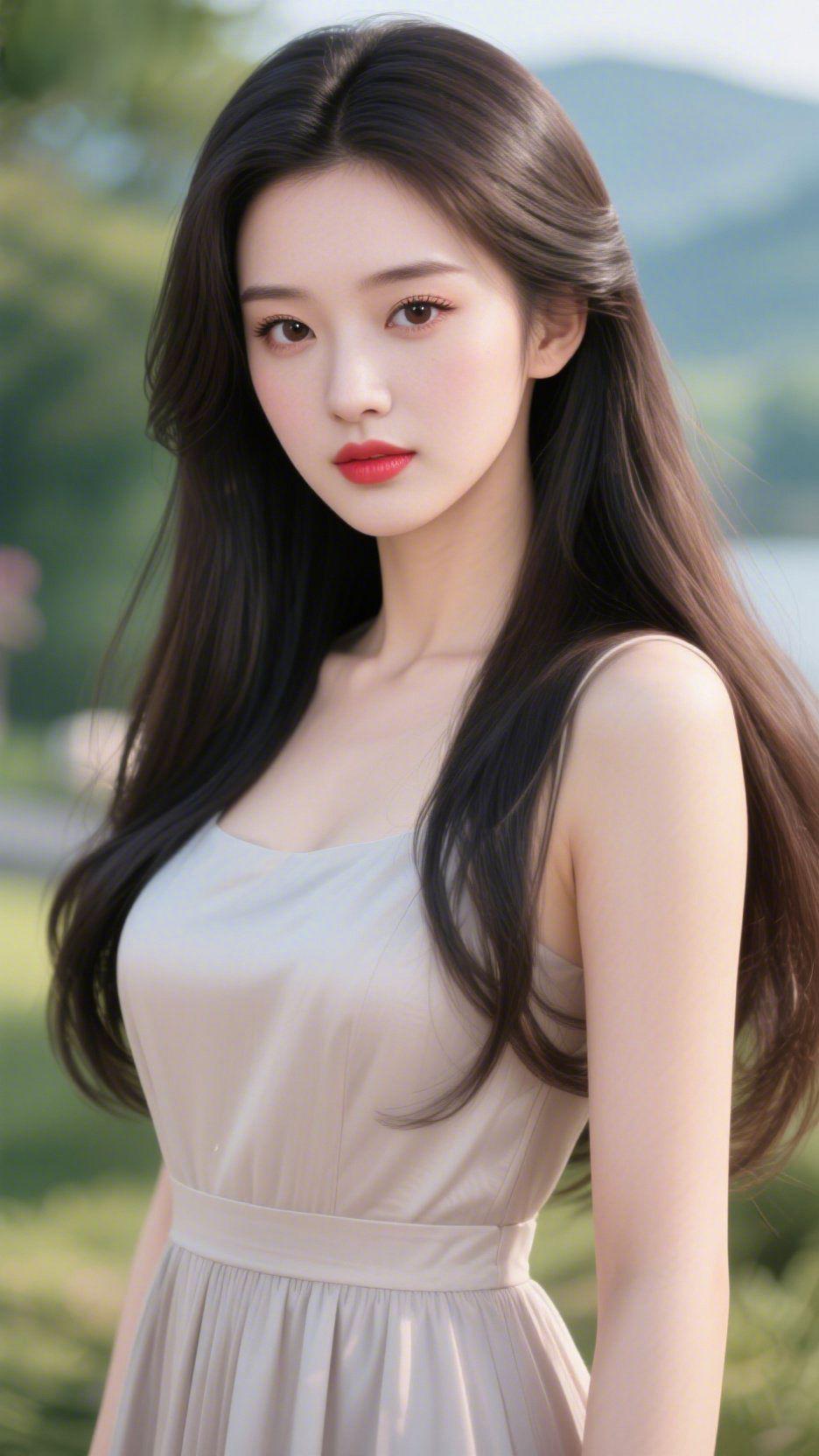 《浅衫柔》 郊野的风裹着草木的清息漫来,她立在细碎的光里。浅杏裙衫似是将晨间的薄雾裁作了衣料,吊带轻贴肩线,衬得发梢都浸着温软的气息。 长发垂在背侧,风过处掠起几缕,每一次轻晃都碰得日光更柔。她抬眼时,唇间的红像春野新绽的花,眼底裹着远山的淡静——是不必赶程的舒展,是风经过时,连裙角都愿放缓节奏的闲意。 这模样该配一杯凉透的清茶,或是檐下轻摇的风铃。有些瞬间从不用言语铺陈,仅是站在那里,便把寻常的日子,织成了一帧慢下来的诗。 郊野闲意 春日衣柔
