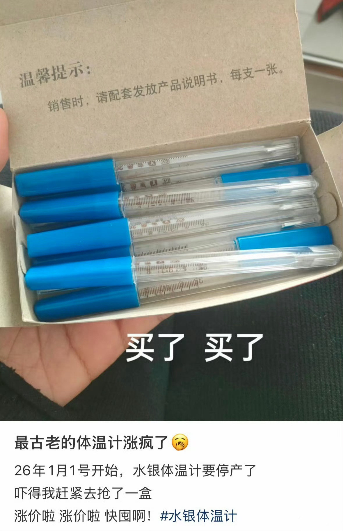 无汞玻璃体温计甩了100余次未成功 总觉得水银体温计停产后,就再也找不到一支靠谱的体温计了那种甩动时的阻尼感、刻度线里稳稳的银柱、多年来从未让人怀疑的精准度,是刻在骨子里的安心。反观现在的替代品:无汞玻璃款甩到手臂发酸还卡壳,电子体温计数值忽高忽低没个准头,总让人心里没底。不是念旧,只是靠谱的确实都是旧物,而替代品却总在掉链子。