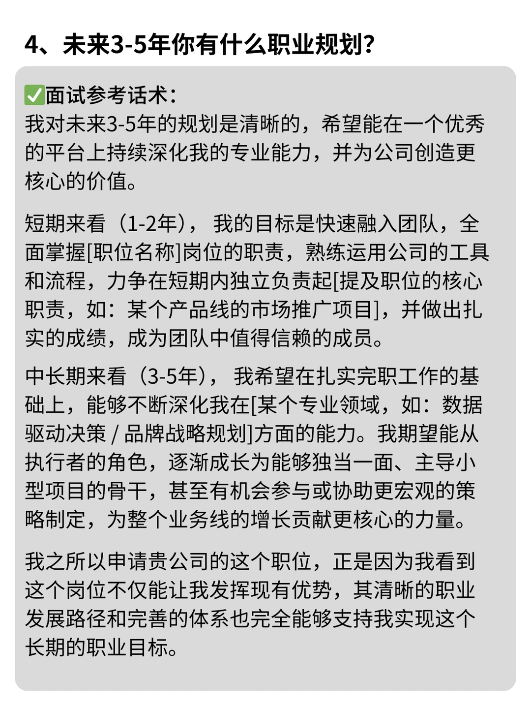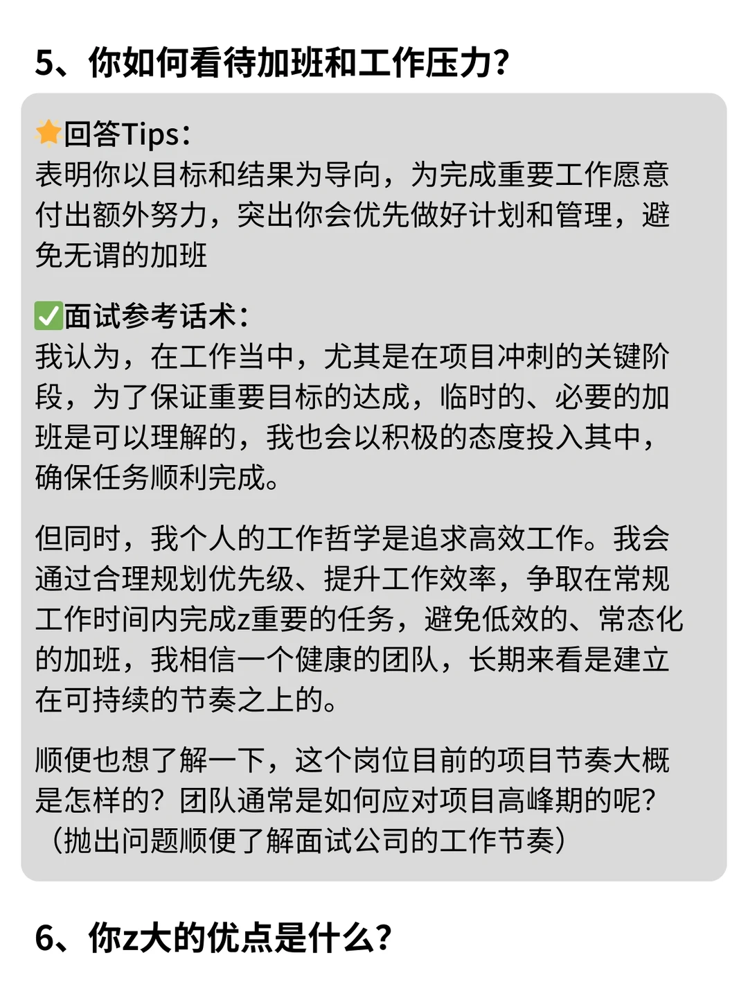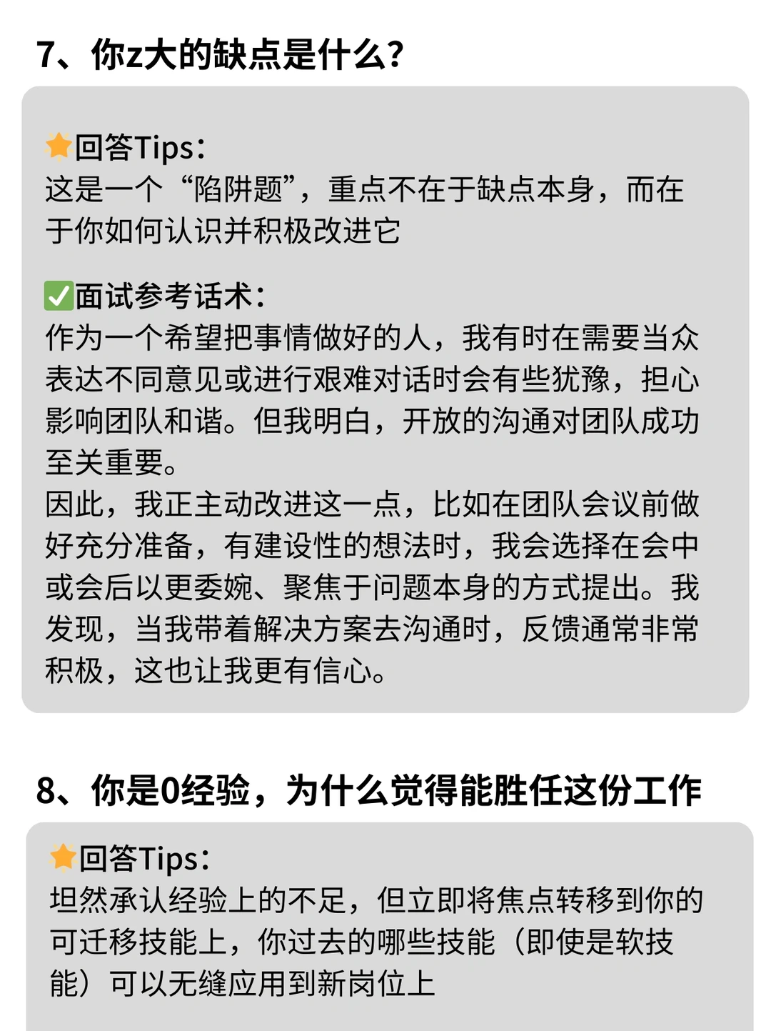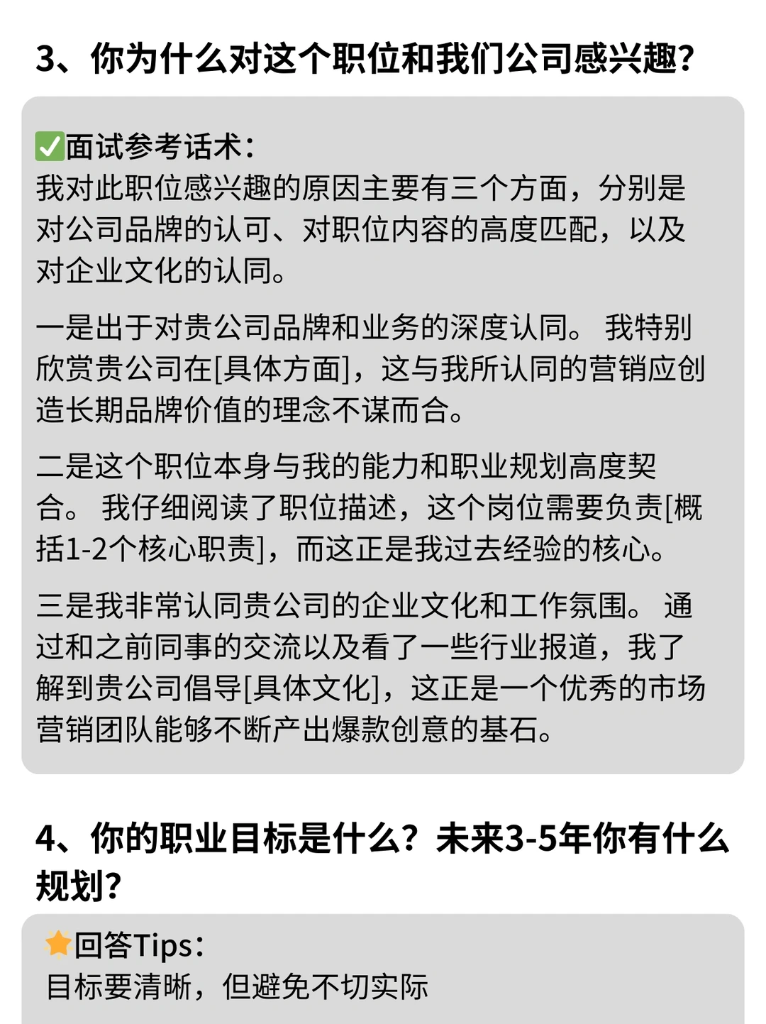 年底其实是找工作的“轻松模式”!虽然开放的岗位可能没那么多,但每个岗位基本都是急招,诚意满满 · 因为大多数人都想着“等过完年再说”,现在去面试,竞争小、要求也更灵活,简直是自带加速buff一样的机会✨ · 不如悄悄行动起来,面试前花点时间看看经验贴,理清自己的优势,把常见问题准备好回答思路(不用硬背),年底就能收获一份满意的offer啦! · ✅外企高频面试问题,面试参考话术👀看上图‼️ 1、请做个自我介绍 2、你为什么离开上一家公司? 3、你为什么对这个职位和我们公司感兴趣? 4、你的职业目标是什么?未来3-5年你有什么规划? 5、你如何看待加班和工作压力? 6、你z大的优点是什么? 7、你z大的缺点是什么? 8、你是0经验,为什么觉得能胜任这份工作 9、说说你空窗期都做了什么? 10、请分享一个你过去工作中遇到的z大挑战或失败,以及你是如何应对的 11、你过去有成就感的一个项目或成绩是什么? 12、你怎么看待你的上一份工作,以及你的领导和同事? ✅以上,面试参考话术👀看上图‼️ · 🙋‍♂️我是瑞池,500强外企面试官 👉(求职版) 分享外企求职干货,和我一起入职外企! -