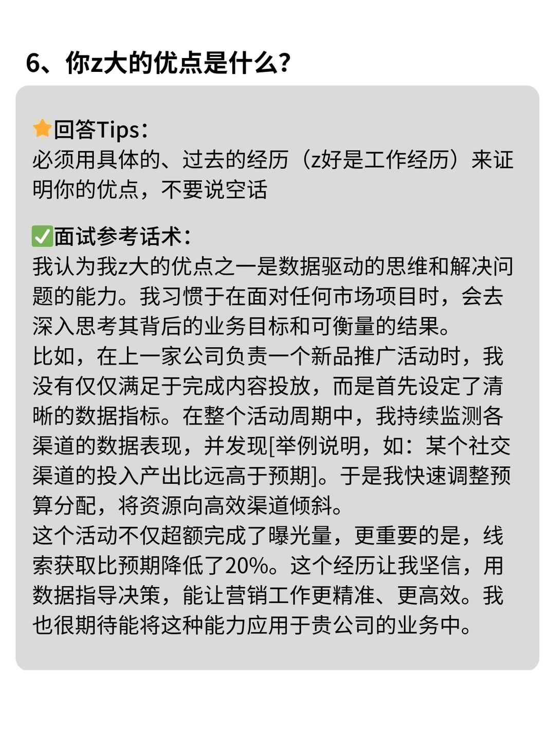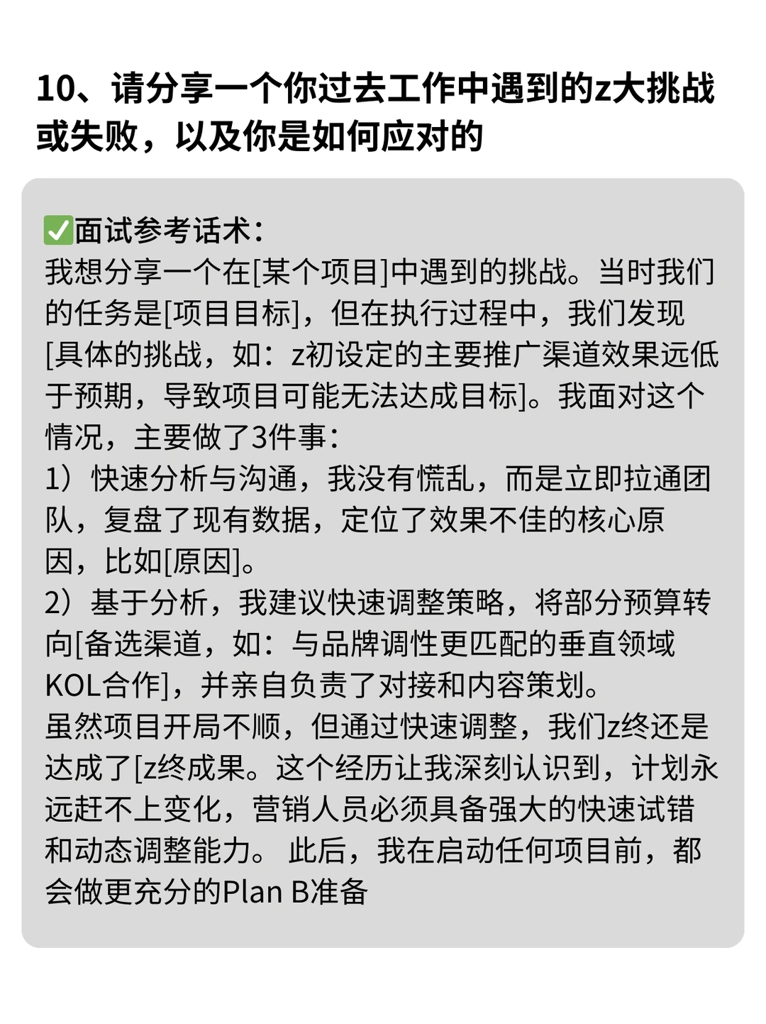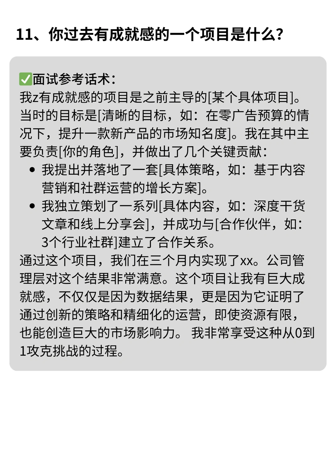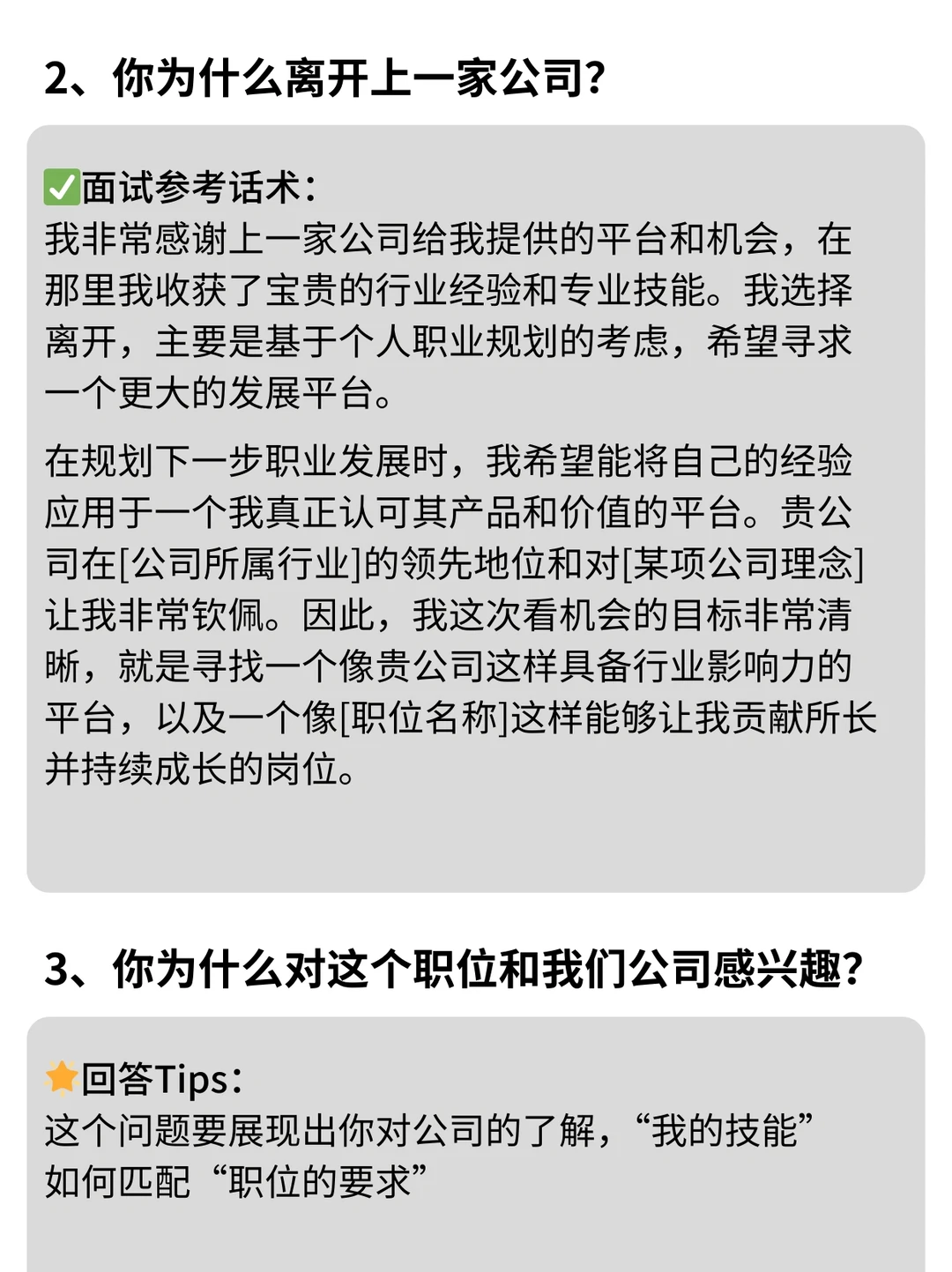 年底其实是找工作的“轻松模式”!虽然开放的岗位可能没那么多,但每个岗位基本都是急招,诚意满满 · 因为大多数人都想着“等过完年再说”,现在去面试,竞争小、要求也更灵活,简直是自带加速buff一样的机会✨ · 不如悄悄行动起来,面试前花点时间看看经验贴,理清自己的优势,把常见问题准备好回答思路(不用硬背),年底就能收获一份满意的offer啦! · ✅外企高频面试问题,面试参考话术👀看上图‼️ 1、请做个自我介绍 2、你为什么离开上一家公司? 3、你为什么对这个职位和我们公司感兴趣? 4、你的职业目标是什么?未来3-5年你有什么规划? 5、你如何看待加班和工作压力? 6、你z大的优点是什么? 7、你z大的缺点是什么? 8、你是0经验,为什么觉得能胜任这份工作 9、说说你空窗期都做了什么? 10、请分享一个你过去工作中遇到的z大挑战或失败,以及你是如何应对的 11、你过去有成就感的一个项目或成绩是什么? 12、你怎么看待你的上一份工作,以及你的领导和同事? ✅以上,面试参考话术👀看上图‼️ · 🙋‍♂️我是瑞池,500强外企面试官 👉(求职版) 分享外企求职干货,和我一起入职外企! -