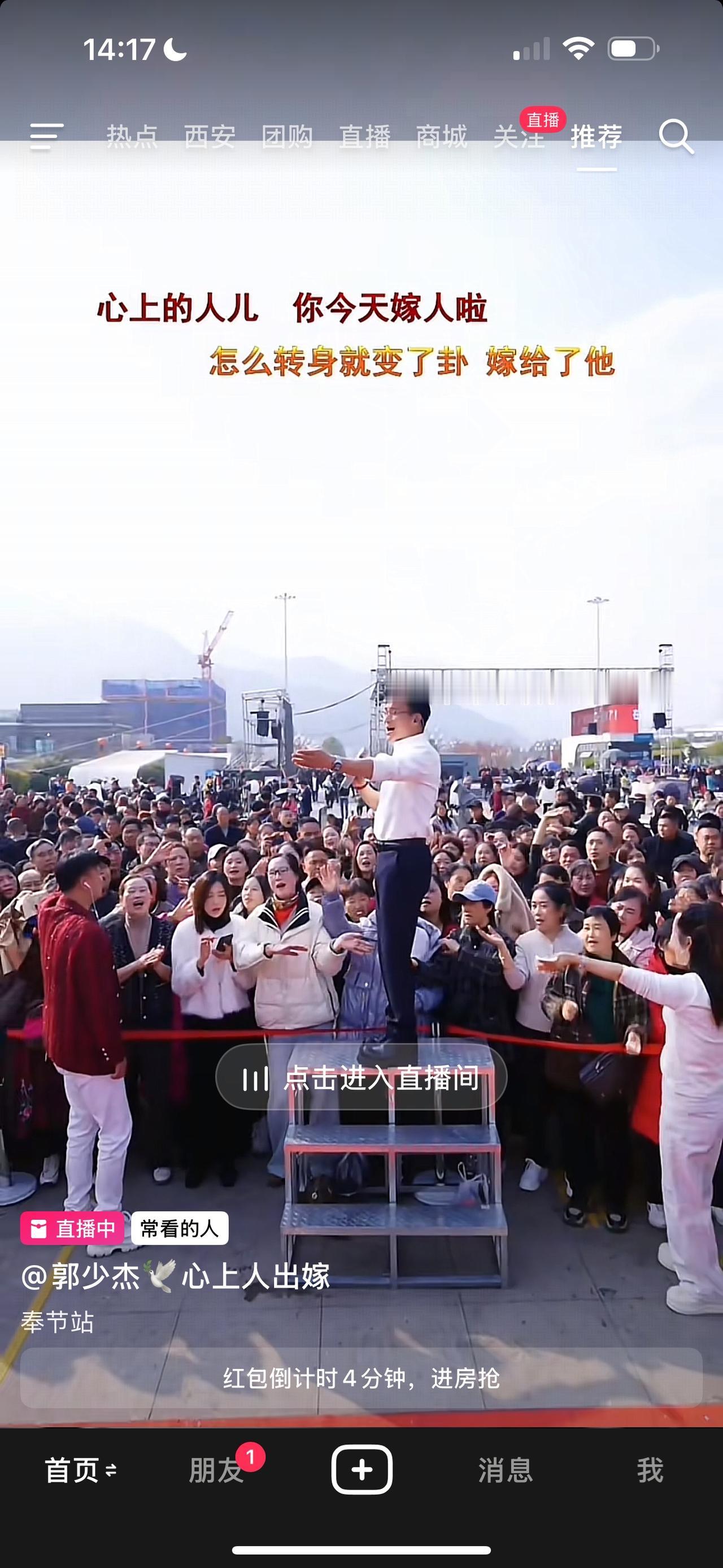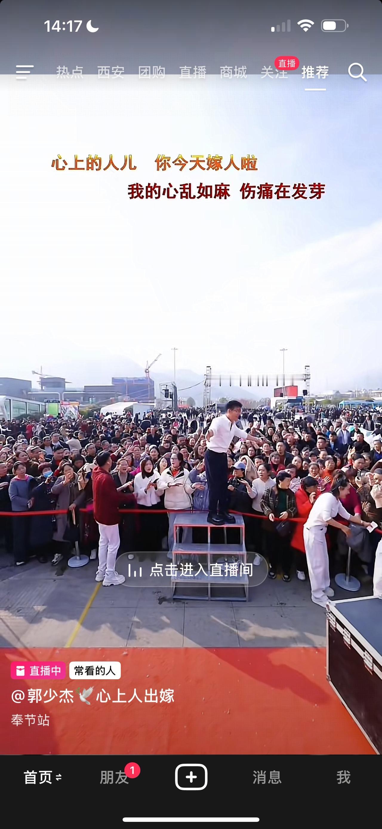 这段时间,每天下午歌手郭少杰在重庆奉节户外唱歌、互动、唱歌海选等活动,现场人山人海,掌声不断,都在于郭少杰歌唱的好,有名气,郭少杰也有与现场群众互动能力,喜欢看的人就多。郭少杰和团队这种户外直播唱歌形式,别具一格,接地气,深受人们喜爱,直播间基本在三、四万人。