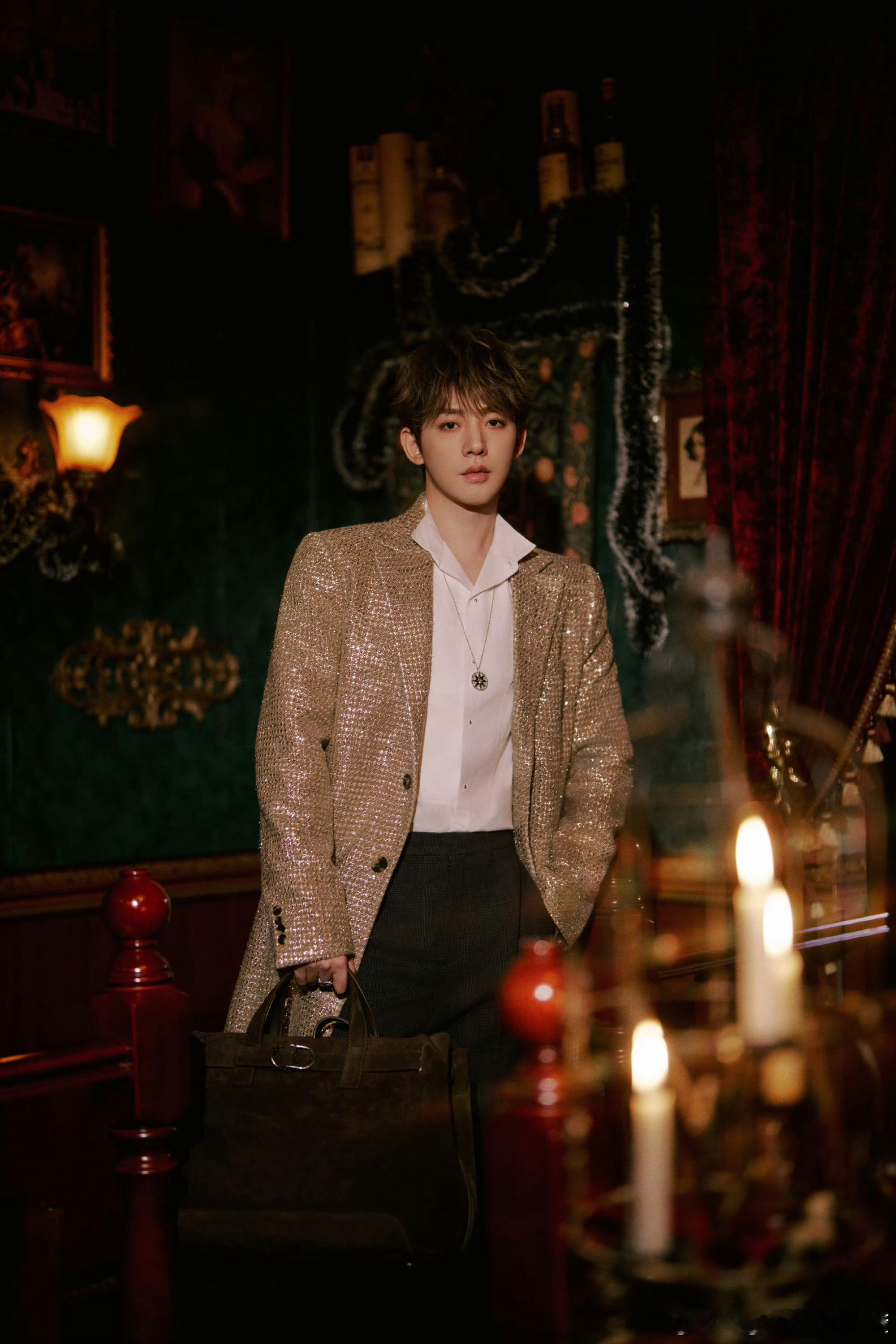 邓为Dior活动造型图,一整个金光闪闪的王子造型