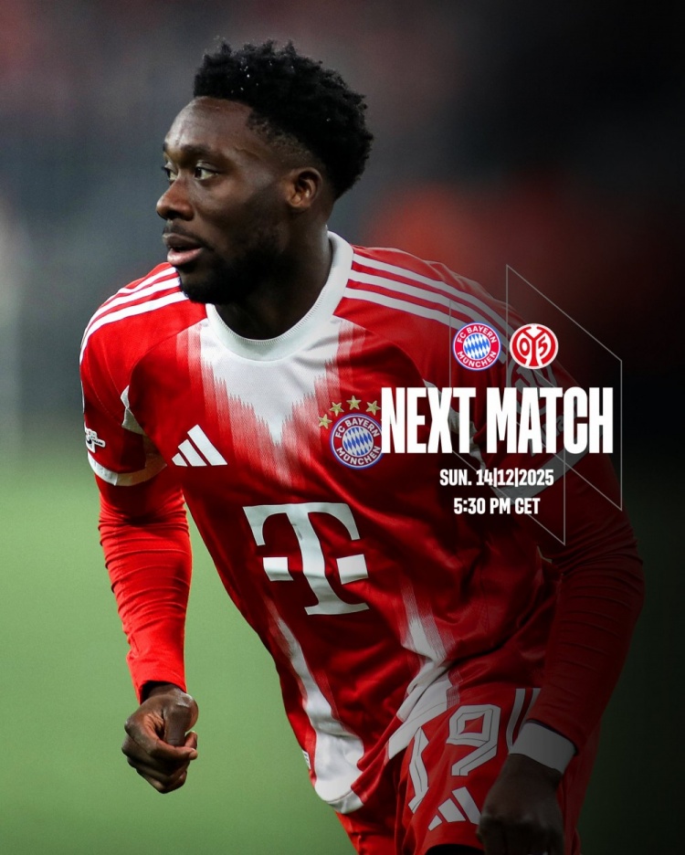 拜仁发布海报预热主场对阵美因茨,阿方索·戴维斯单人出镜
