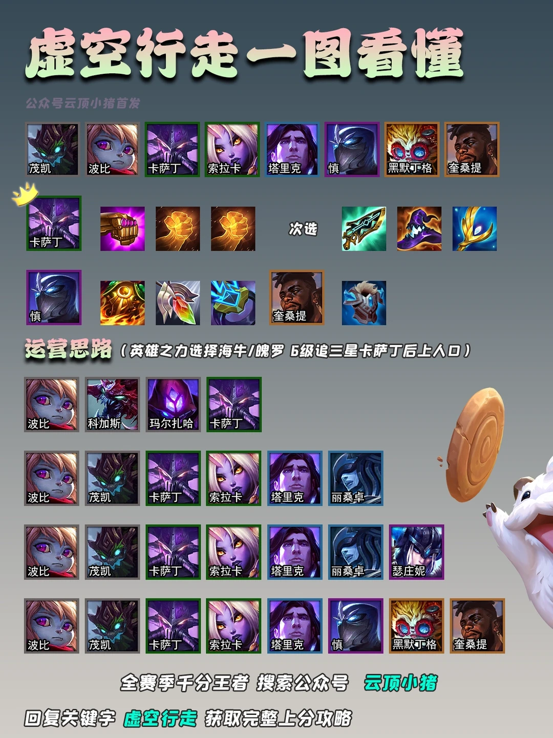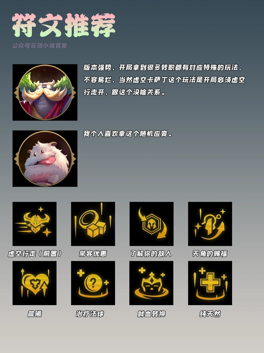 这个玩法必须要特定海克斯虚空行走,这个强化拿了之后卡萨丁就会和峡谷里R技能一样飞来飞去切后排。