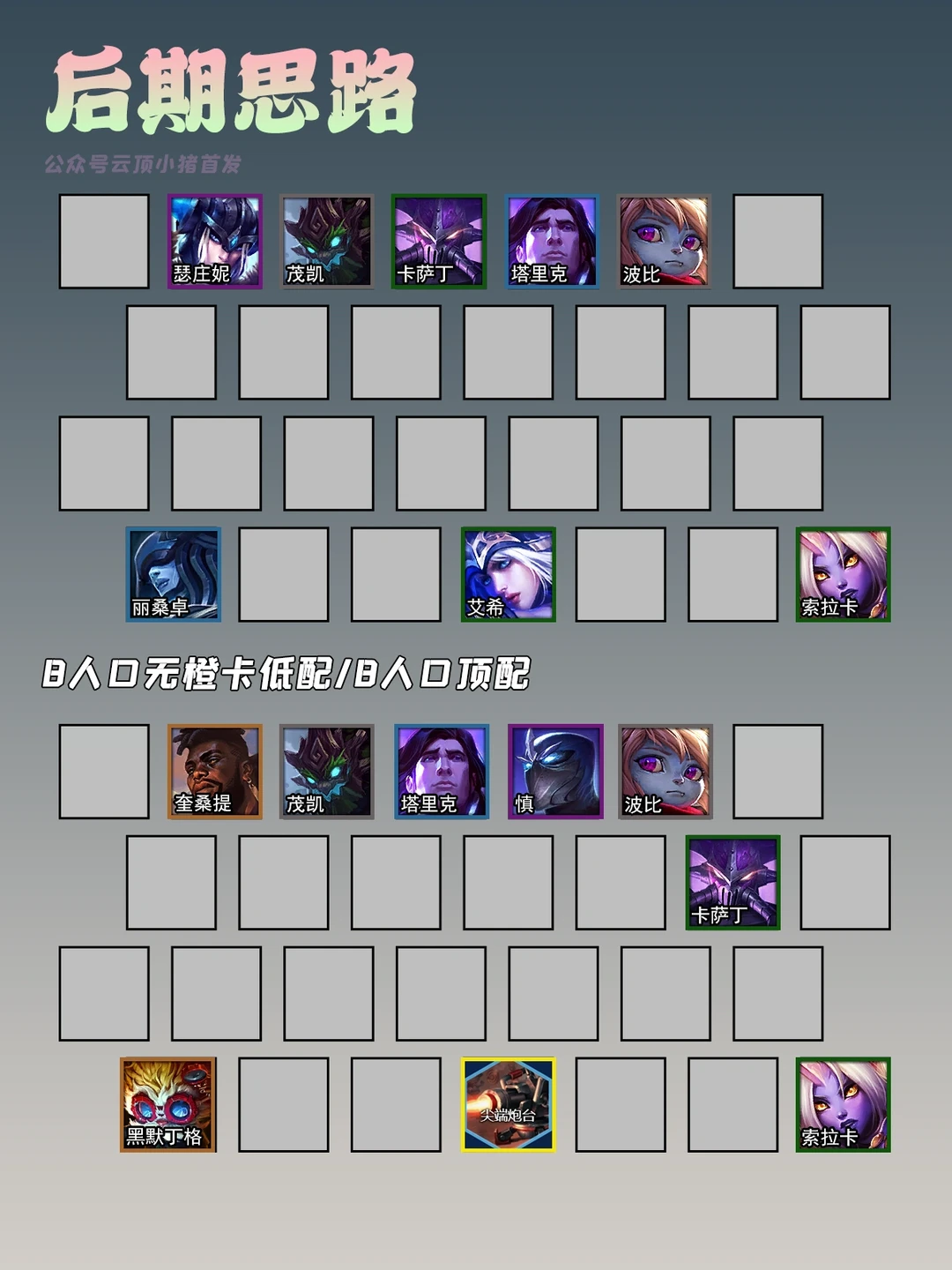 今天给大家推荐阵容这个赛季特定海克斯的特殊玩法,强度非常高,基本上和狼人的贪欲猎手和好事岩雀差不多,只要独家牌运不是太差随便前三。