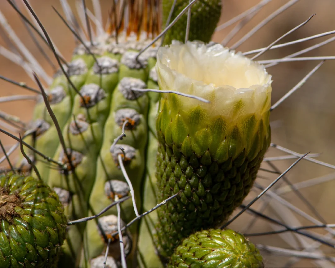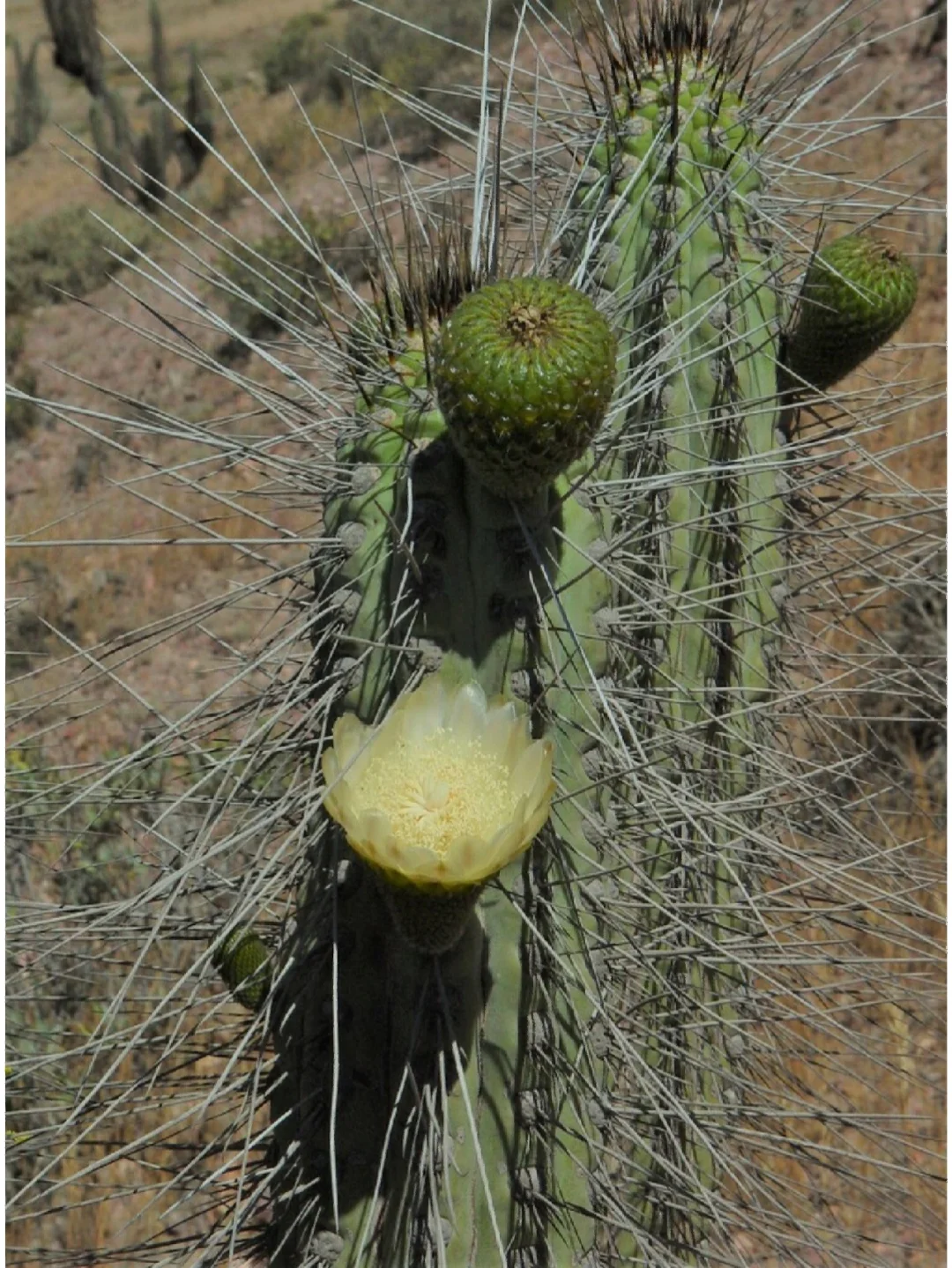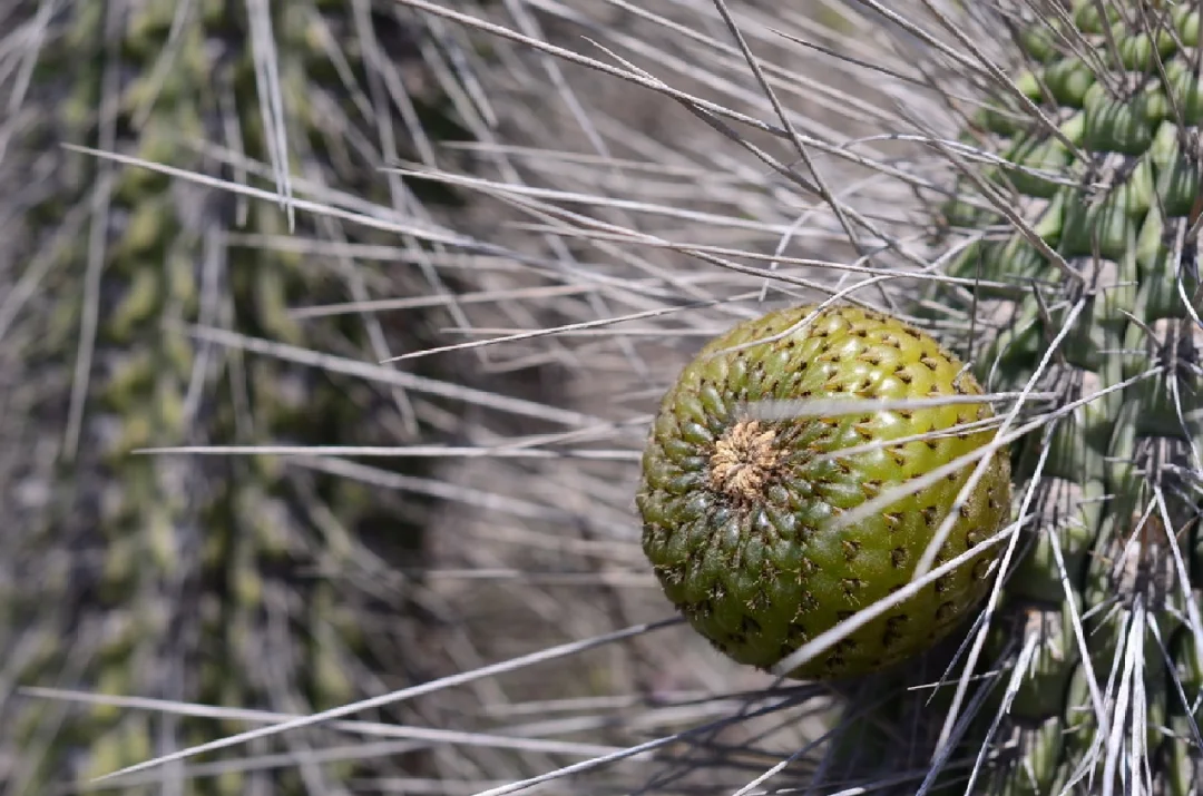 南美仙人掌水果Eulychnia acida(copao) 壮观的、大型的、多功能的-分支的产于智利沙漠的仙人掌,有深深的脊状、浓密的芽武装长长的,苍白的脊椎这种大的、圆的、有鳞的水果可食用,多汁,酸味宜人。