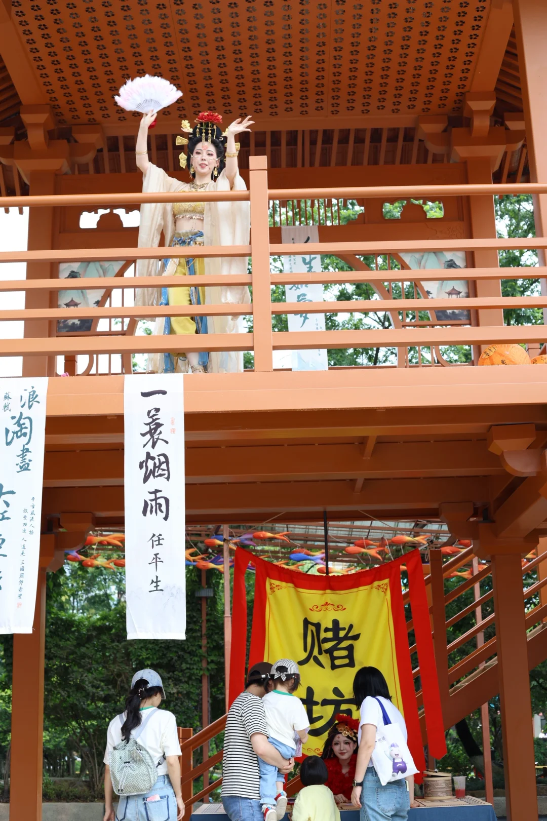 我们去的时候,有点小雨🌧️,但是依然不影响心情。不下雨时,玩项目看表演,和穿着古装的NPC互动,拍照片📷,下雨时去室内淘气堡游玩,园内还有吃到一条街、冰淇淋推车🛒,对于家里3岁的小孩来说,这里实在太好玩了。
