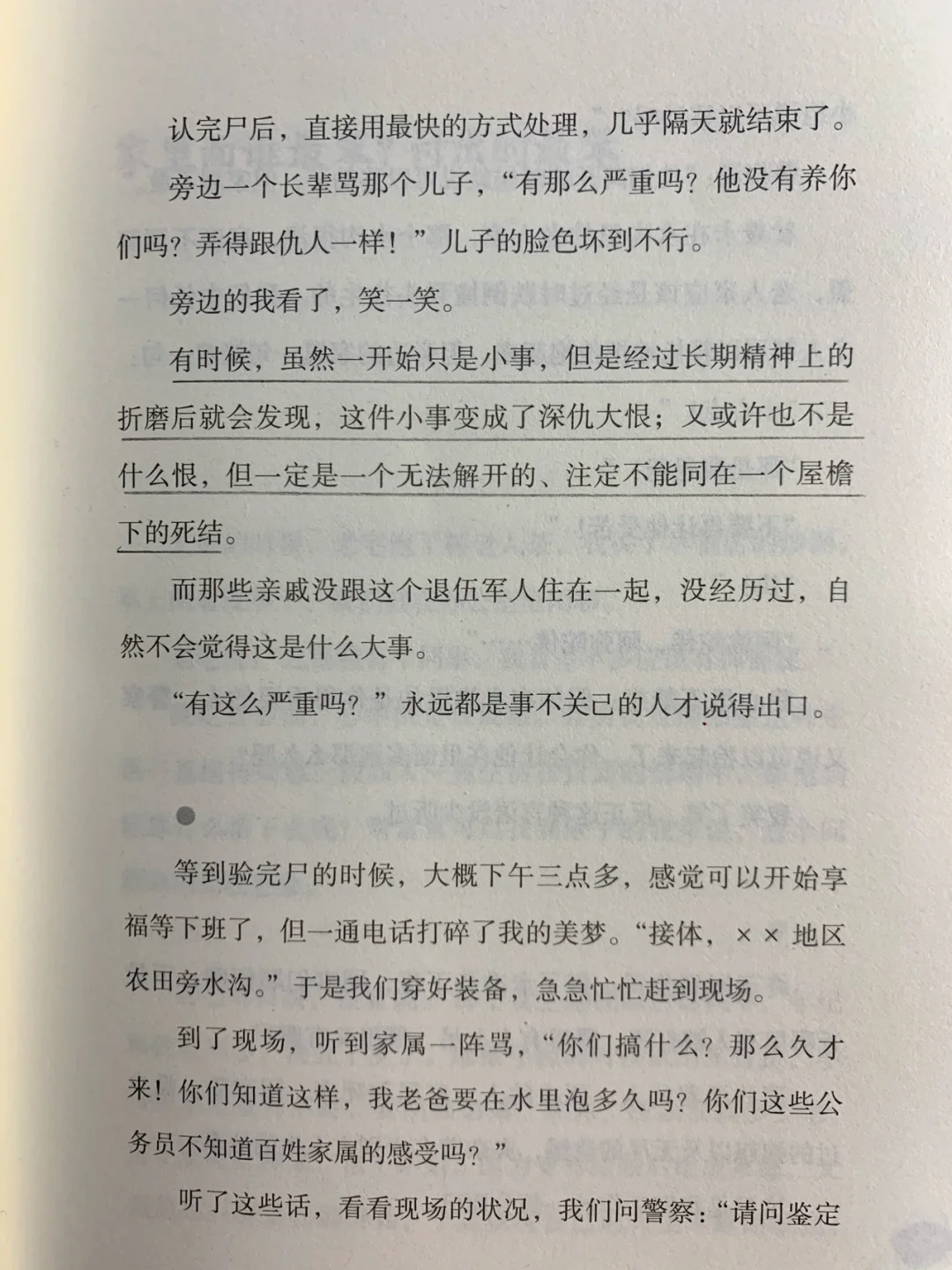 这是一本很特别的书,以一个殡仪馆从业者的视角诉说着一个个死去的人的故事在作者诙谐幽默的文字里,死亡变得更加沉重。而人性也在此中展露无遗,让人产生厌恶、痛苦继而感伤的多重情绪。虽然作者的文笔并没有很好,揭露的道理也并没有多深刻,然而是十分恰当和朴实的,因为他并非专业的作家,而他笔下的事迹本就是真实的小人物的故事。