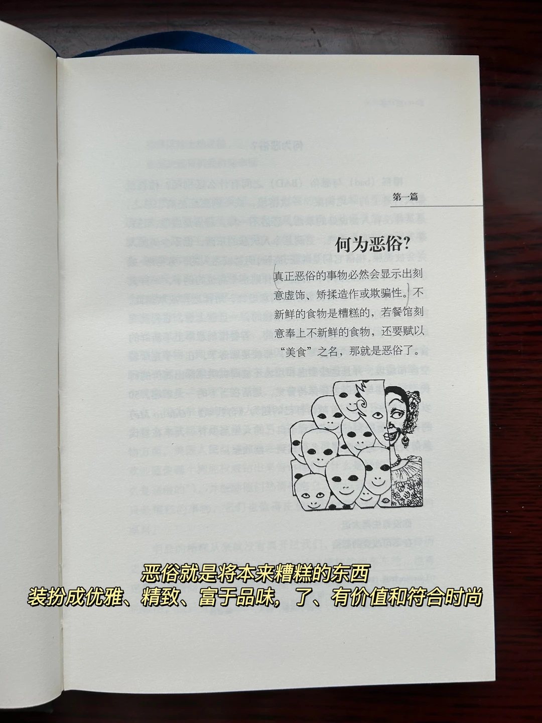 三内容分享:恶俗就是弄虚作假、装腔作势却恬不知耻;是餐馆、酒店、电影、电视、大学等各个领域充斥着的虚伪、俗艳和无知;是以丑为美、以假为真、以浅薄为深刻、以愚昧为智慧。本书通过无情的揭露和入骨的批判,展现出现代文明社会种种光怪陆离的现象,敏锐地捕捉到了这个商业欺诈时代的特点——恶俗,并剖析了恶俗的本质、根源和未来,尖锐刺耳又不失幽默有趣。虽然极尽嘲讽之能事,作者之意却不在于讽刺挖苦,而是希望借此唤醒大众、反省大众文化,本书因此称得上是一部警世诤言。