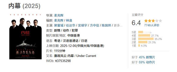 香港电影《内幕》扑得太惨烈了! 香港电影真的是没有什么前途的,正在上映的《内幕》,麦兆辉编剧导演,郭富城、任达华、吴镇宇、方中信等诸多港星主演,结果上映7天累计综合票房只有1345万,预测最终票房2800万,而该片的投资据说高达2亿,这部电影可以说扑得惊天地泣鬼神。 《内幕》的豆瓣评分只有6.4,属于典型性平庸之作,票房更是一塌糊涂,虽然都是大导演大明星也一点用没有。香港电影基本上没有什么新鲜的内容,题材也没有什么新颖的东西,演员还是那几个,包括接下来古天乐主演的《寻秦记》,即便是有所谓的情怀在里面,在当今的市场中,也是乏善可陈。 鸿水说