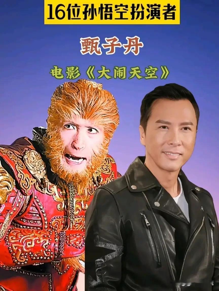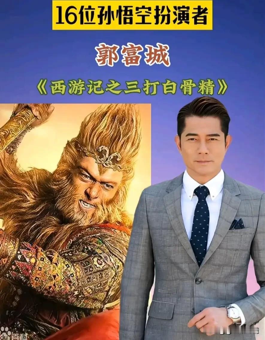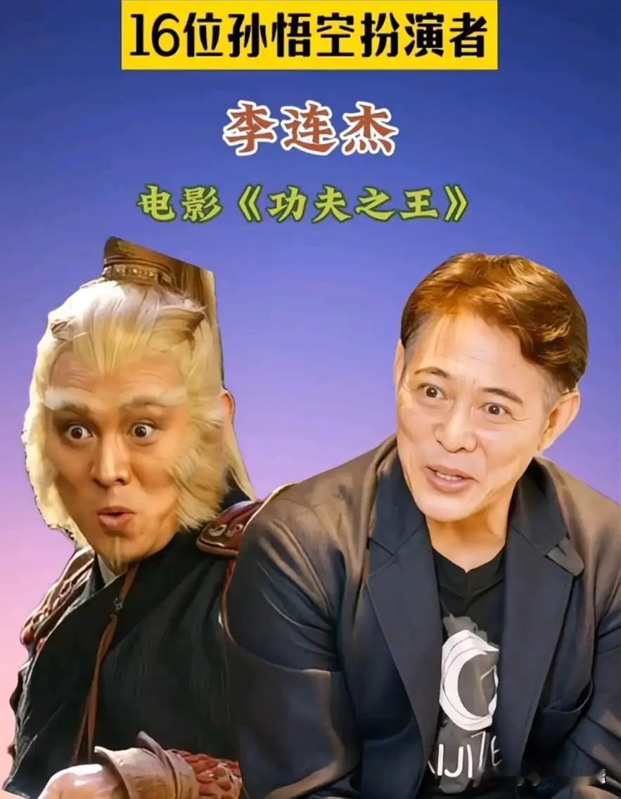 陈浩民扮演的孙悟空。 李连杰扮演的孙悟空。 六小龄童扮演的孙悟空。 林更新扮演的