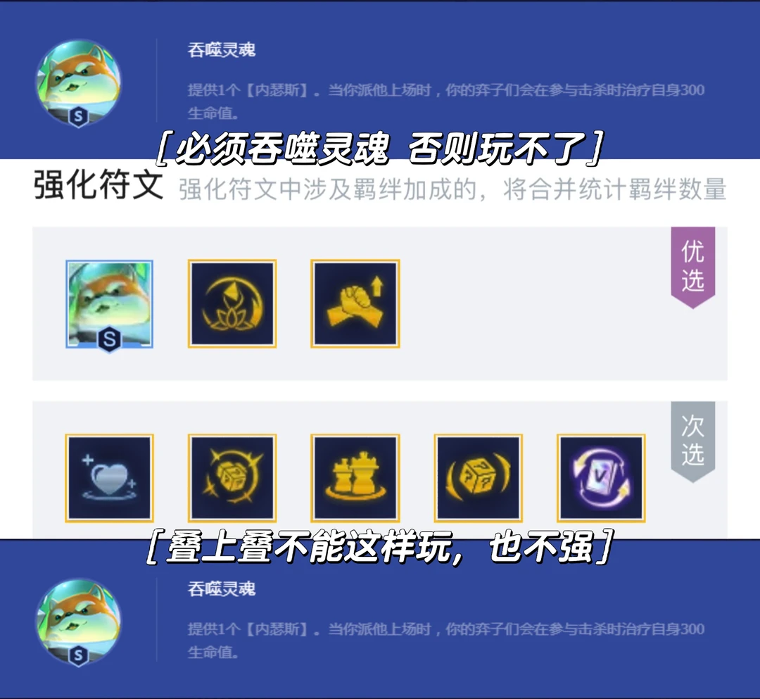 像这种专属玩法必须有对应强化哈,否则强度大滑坡,和猴子大闹天宫,亚索虹吸之风一个道理,叠上叠不是玩的,这个版本也不建议玩叠上叠。