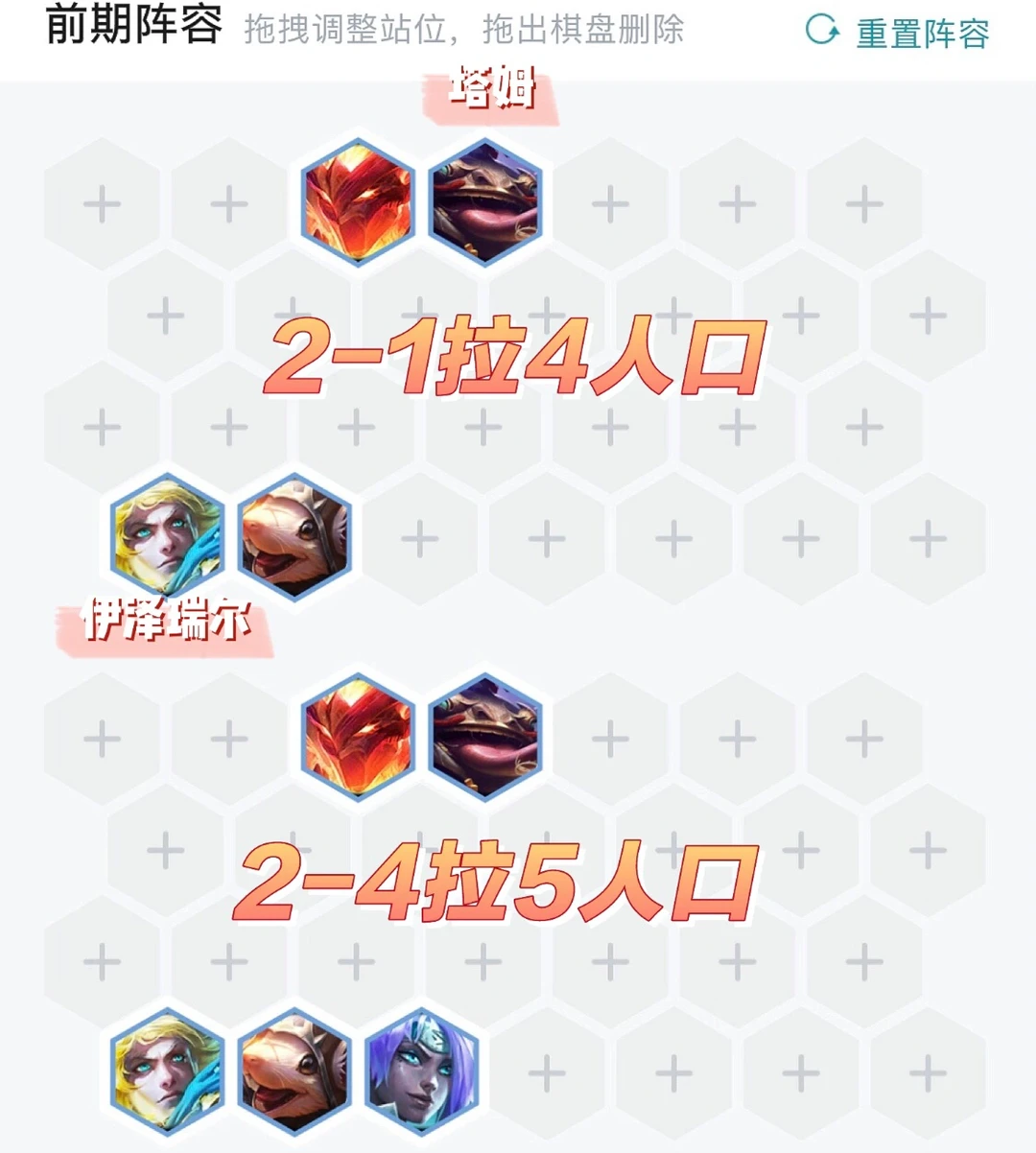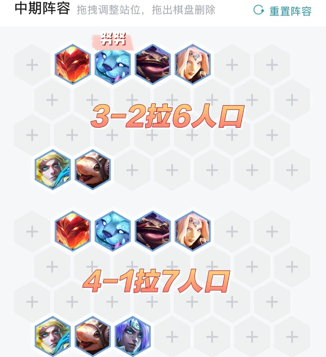 通用:利滚利、摆烂、等经济类海克斯,小巨人、代谢加速器等苟分海克斯、新人入队等。
