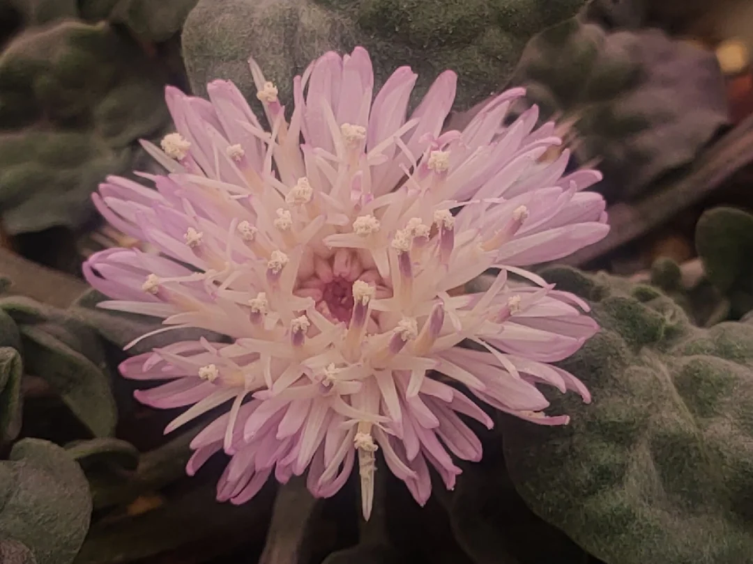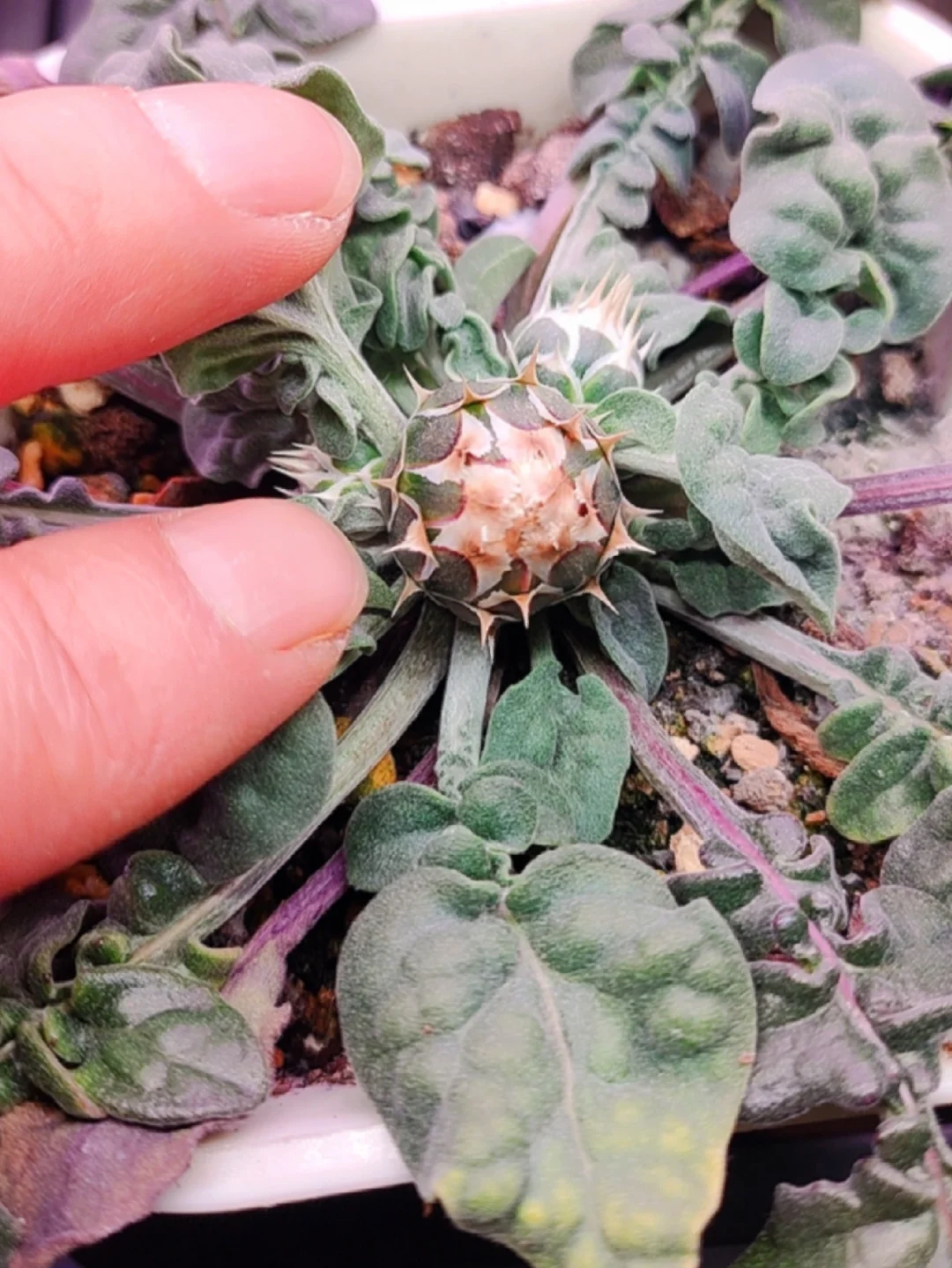 Centaurea aegilophila 矢车菊属物种,原产于塞浦路斯和土耳其南部沿海地区,2022年10月份播种,2023年2月开花,花叶比可以,株型:匍匐型。