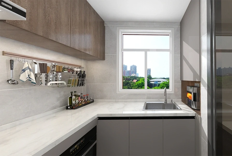 🌹半开放式的厨房使得空间增大,视野开阔。增加了与家人之间的互动与交流。各种吊架的设计也丰富了储物空间。