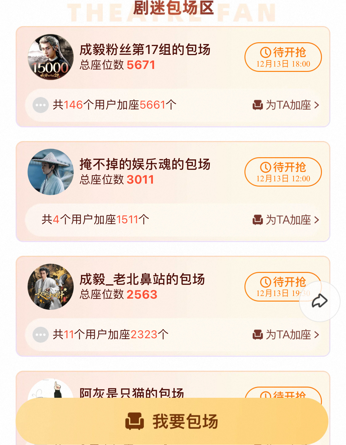 优酷首日18.4万场云包场全被抢光什么水平?成毅这个首日号召力也太强大了吧!优酷的剧首日都是滞销的,但是长安二十四计这么大的数量居然抢光了,成毅的剧粉盘非常强大!不要担心,明天起还有大量云包场投放,未来几天都有,到时再来抢了看剧哦