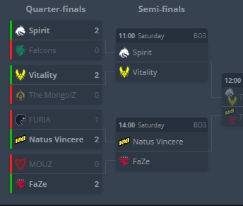 直播吧12月13日讯随着NAVI战胜黑豹搭上末班车,CS2布达佩斯MAJOR的四强已经全部产生,其中小蜜蜂将对阵绿龙,Zywoo和donk两位年度TOP1的最有力竞争者将上演巅峰对决,而另一半区FAZE和NAVI两大传统豪门将争夺另一个决赛名额!