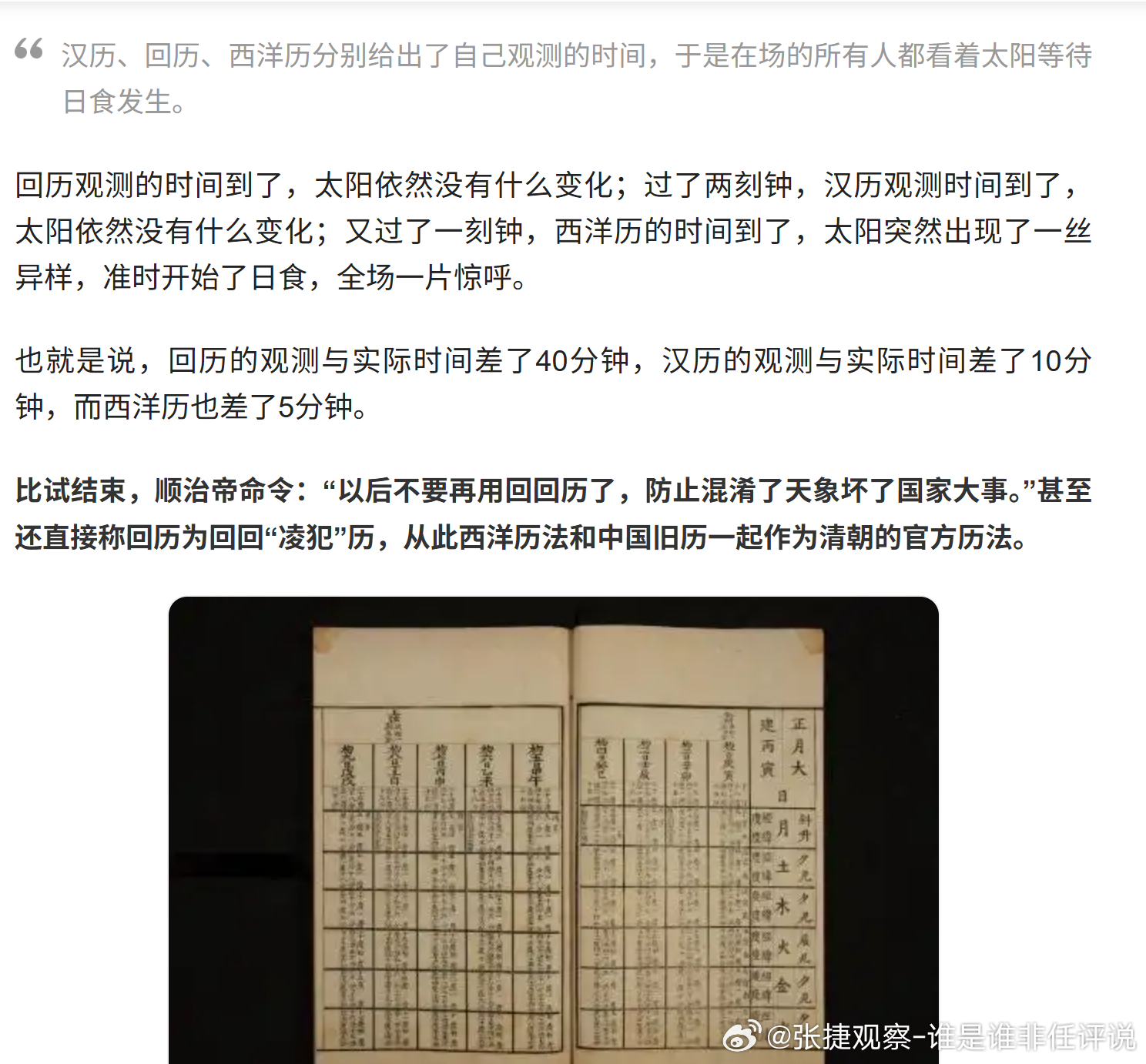 #张捷盘历史# 河清先生这个发言可能没有看懂我的逻辑,本人的逻辑是明代的徐光启等人投靠了基督教,成为了基督教的圣教三柱石,他们的著作不可能是翻译来自西方,因为西方那个时候的伽利略还被打压,所以是谁翻译谁的问题,只有西方抄袭中国,而且是伽利略也涉嫌抄袭才对,因为没有足够的数据积累是不可能的,后来的利玛窦、汤若望、南怀仁的知识来源,也不可能来自伽利略。所以他们应该都是抄的明朝,徐光启等人有问题!中国的科技在明末开始外流,明清之间改朝换代失传是正常的,后来汤若望上台钦天监,还是比试的结果,这里你说是他们掌权钦天监之后才抄袭,本身与历史记载有硬伤的,以后就以硬伤否定你的全部,这里就是高级黑在质疑伪史当中的带路。只有他们都是明朝就抄了才合乎逻辑,不能为了目的不讲逻辑不讲真话。大家质疑西方伪史,主要针对的是西方的伪造,现在高级黑歪楼为主要满清外泄,与史实明朝就开始外泄不符,变成了满汉矛盾为主,以后故意激化民族矛盾,他们就可以以破坏团结封了伪史的讨论,因此高级黑才套路深啊!