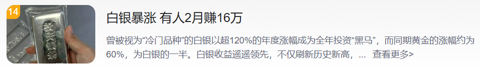 不少人认为,相较于黄金,银条投资门槛更低,且短期涨幅带来的情绪价值更强,不仅大型机构纷纷调整组合、增加白银持仓,散户投资者更是热情高涨。