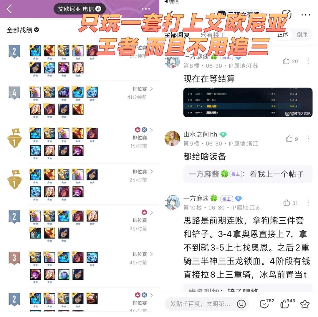 [赞R]今天给大家推荐一套大家喜欢的冷门阵容来啦!贴吧一位大神(一方麻酱)仅靠这一套阵冲上了电一最强王者,思路玩法有所借鉴,在此感谢~