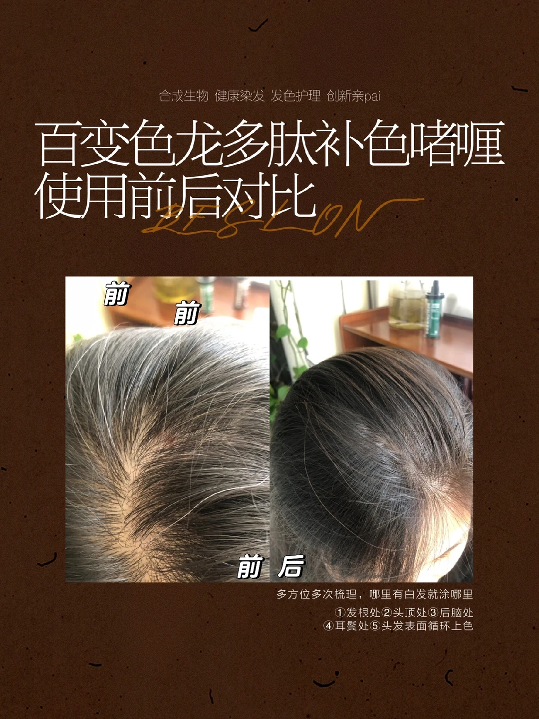 因为她,我便用起来,很方便,直接挤到有白发的位置,再用梳子梳。3到5次循序渐进上色,上到自己满意就好。洗头之前可以涂抹固色凝露,半小时后可洗,妥妥的遮白神器。