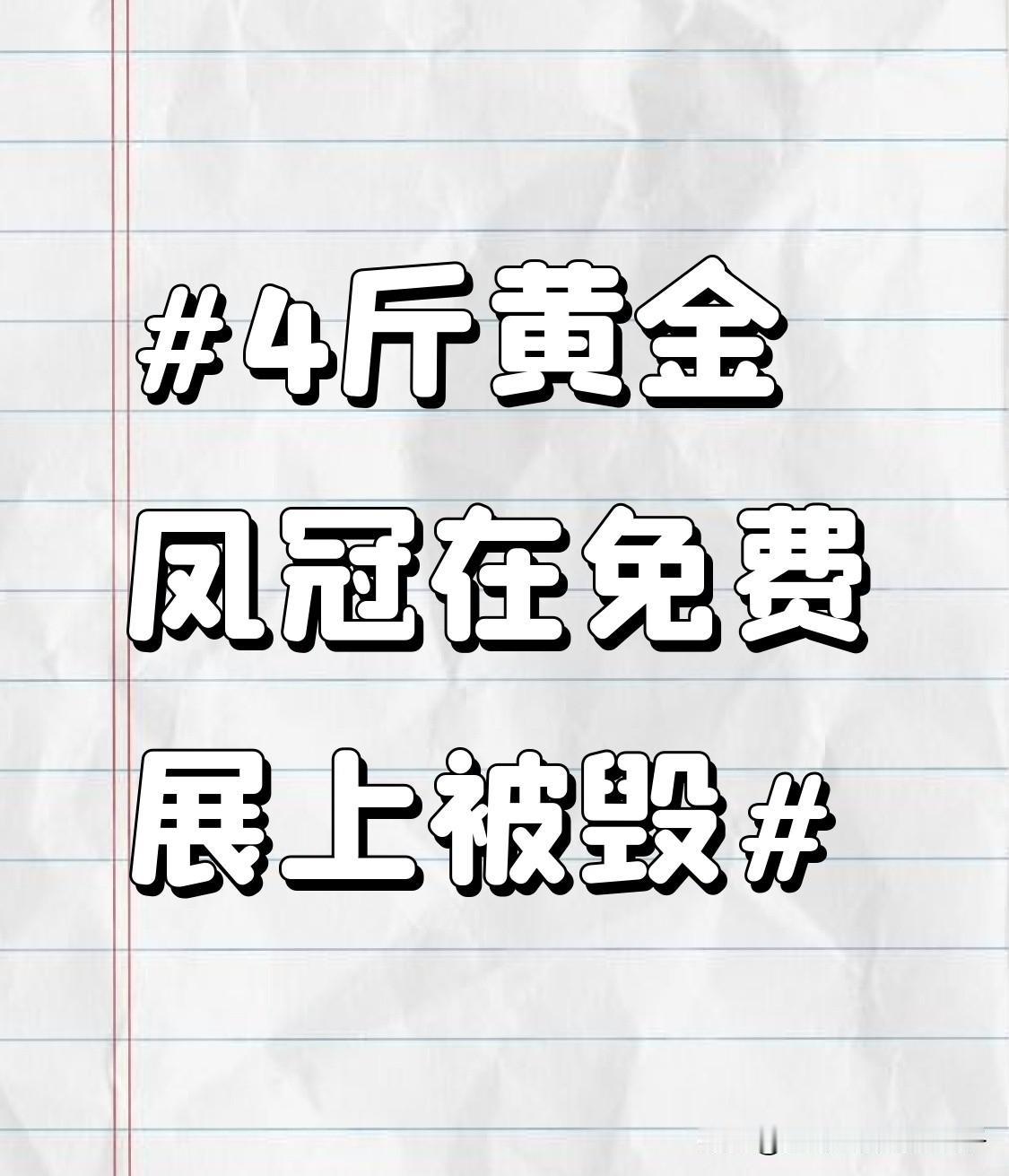 4斤黄金凤冠在免费展上被毁 12月13日,千万粉丝博主张凯毅的一个视频可把网友们炸锅了。她和丈夫办免费展览,分享收集的艺术家作品,结果最宝贝的4斤重黄金凤冠被破坏。这凤冠是丈夫结婚时亲手为她打造的,意义非凡。 视频里,一男孩反复抱展台柜子、上手触碰,致凤冠和展罩掉地。张凯毅表示已请保安、装加固罩,还是防不住。现在她头疼定损,这定制凤冠没市场价。律师说未成年人损坏东西家长兜底,若展罩没固定牢主办方也有责任,此前山东就有小孩打碎瓷瓶,家长和展馆分摊责任。观展真别动手,家长也得看好孩子,不然好心办展却闹心,多可惜!