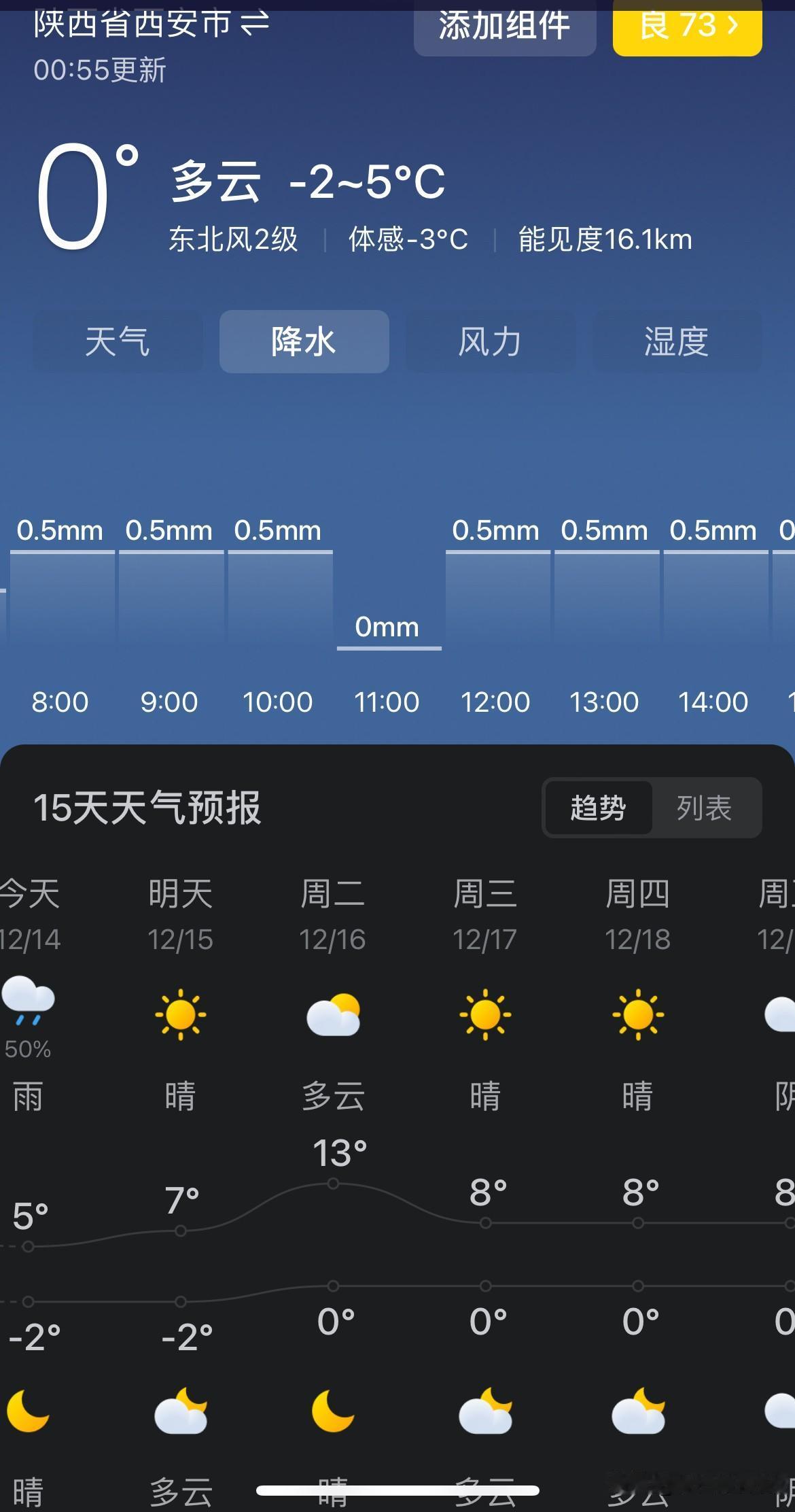 今年西安的气候真的是越来越琢磨不透了 大雪节气都过去近两周了, 马上要到冬至了,还在下雨🌧️ 天气预报显示 这个周末12月14日将迎来一场 降雨天气过程,降雨概率50%, 前些年这个时候 大雪都下了几场了, 温度明明都零下2度了, 竟然还是降雨天气, 不过现在的天气预报也真够精准的, 就像西游记里的泾河龙王降雨一样, 几点几分,降多少毫米的雨, 非常精确,甚至雨停的时间都测得 明明白白的。 西安断崖式降温 西安天气预报 西安天气 西安第一场雨雪 西安魔幻天气