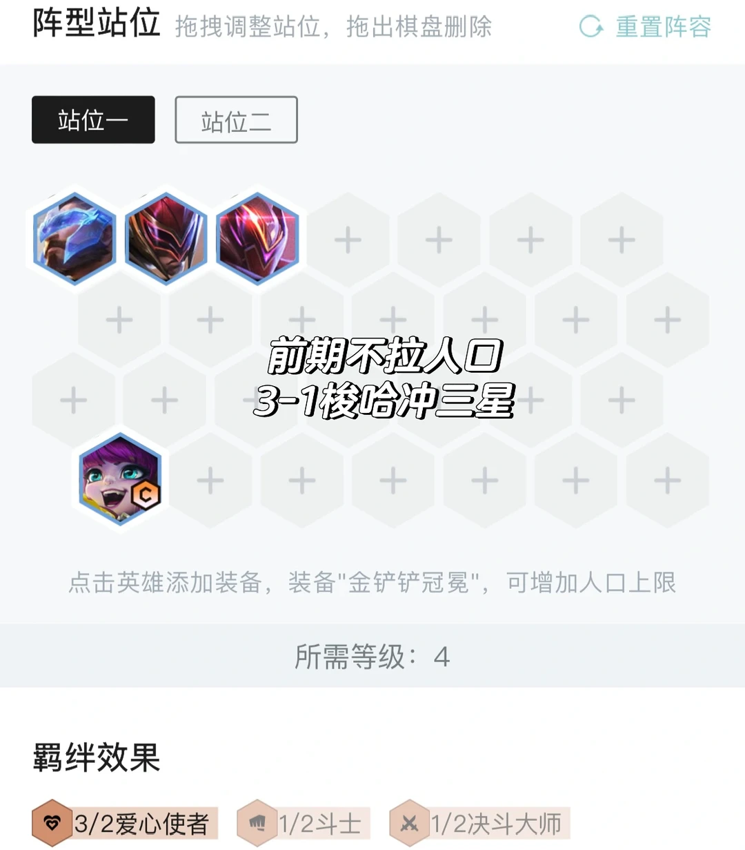前中期不要拉人口,卡4人口连败是最好的,需要养经济抽牌,可以适当的卖血卖质量,3-1抽牌留10块或者直接梭哈出三星,这个视情况而定。