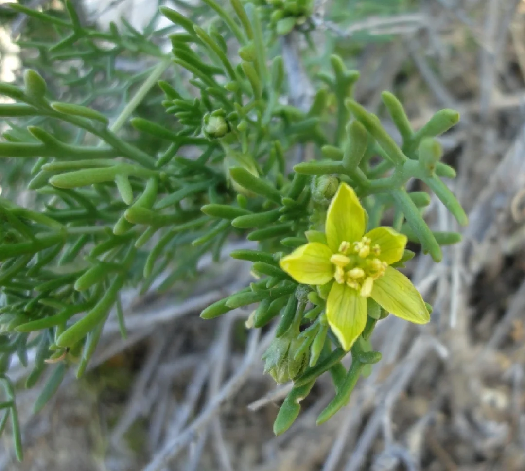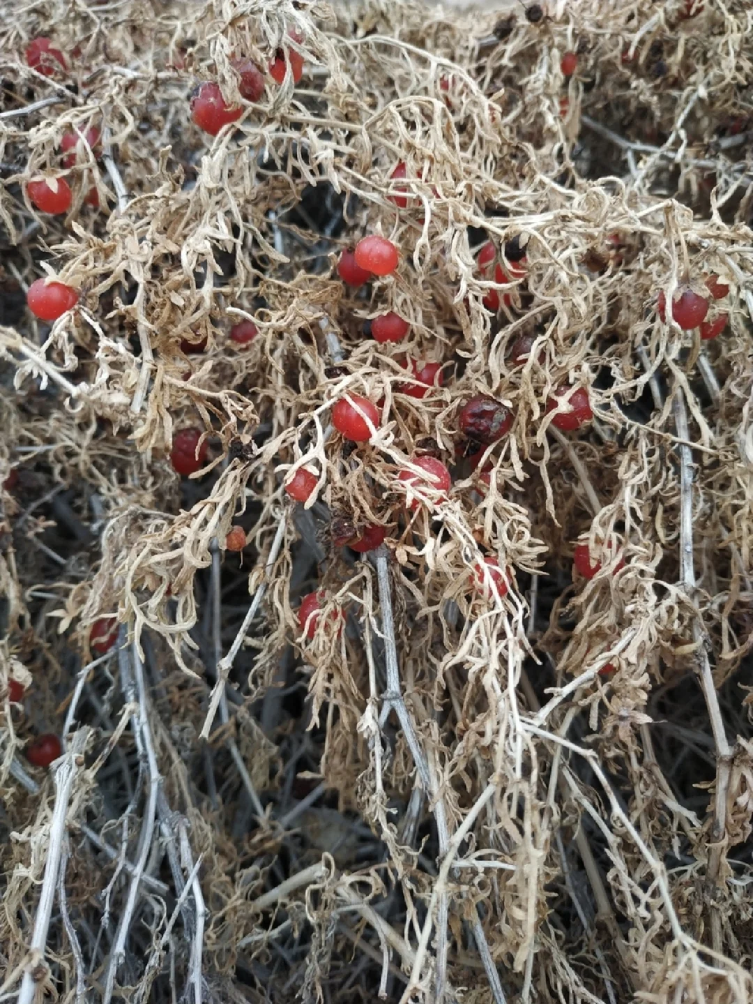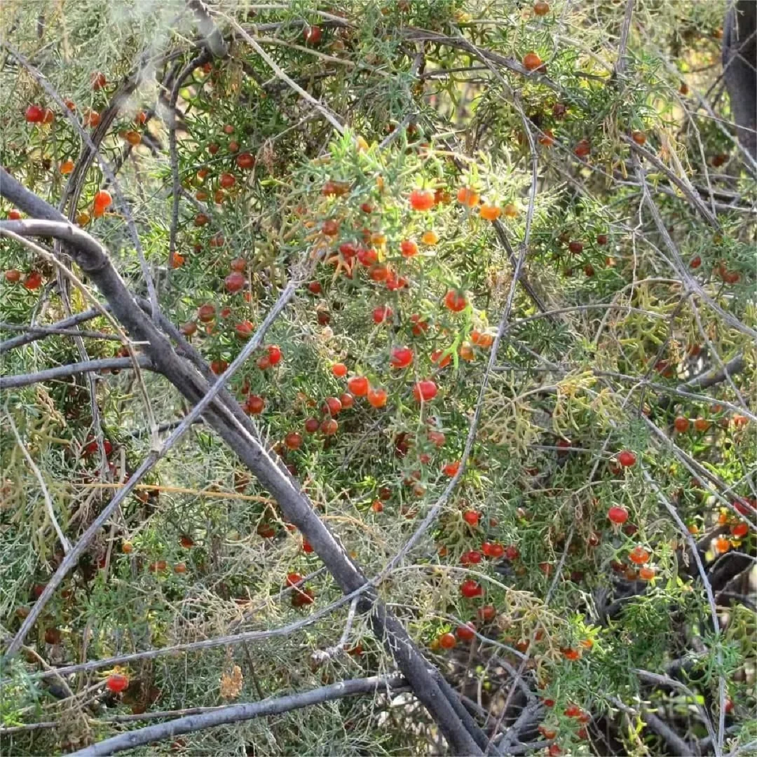 一种常绿植物,非常罕见且美丽,蔓生或匍匐矮子灌木分支的茎和深深浅裂、薄而多汁的叶子。不显眼的黄绿色花s之后是球状的鲜红色果实,直径约1厘米。这些水果可食用,甜美可口。黑果马拉考果树广泛分布于土库曼斯坦、乌兹别克斯坦和伊朗至阿富汗,但仅在砾石、岩石斜坡上的小种群中已知,通常在石膏土上。它最适合夏季炎热干燥、冬季严寒的气候。尽管水果爱好者非常追捧它,但它在栽培方面并不为人所知,可能只有少数几个收藏。播种后,种子可能受益于低温层积。