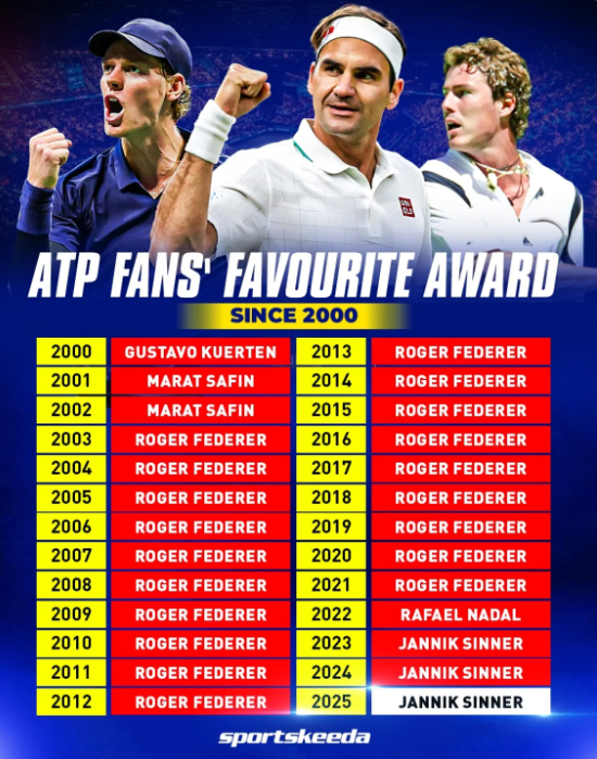 2000年来历届ATP最受球迷欢迎奖网坛风云