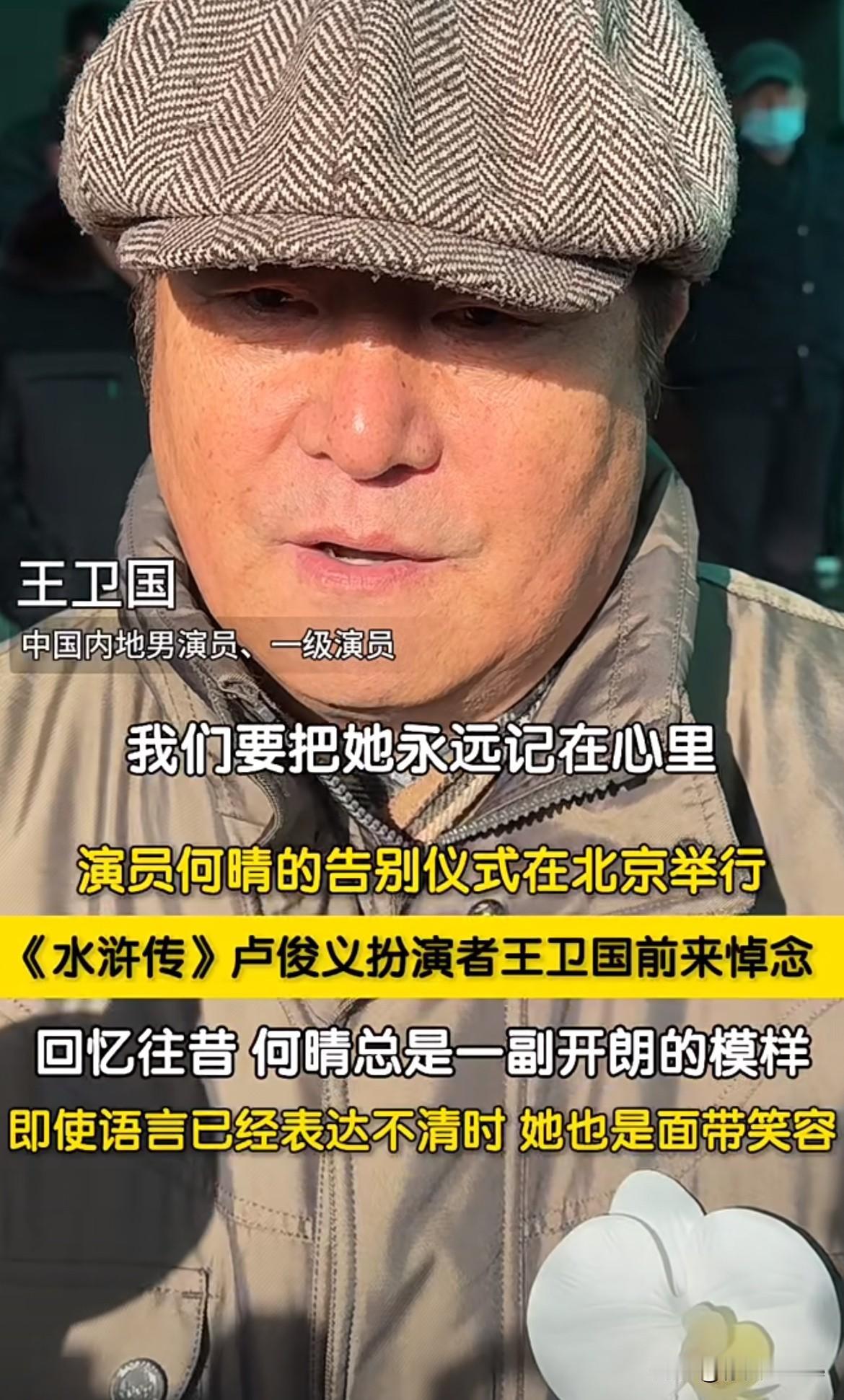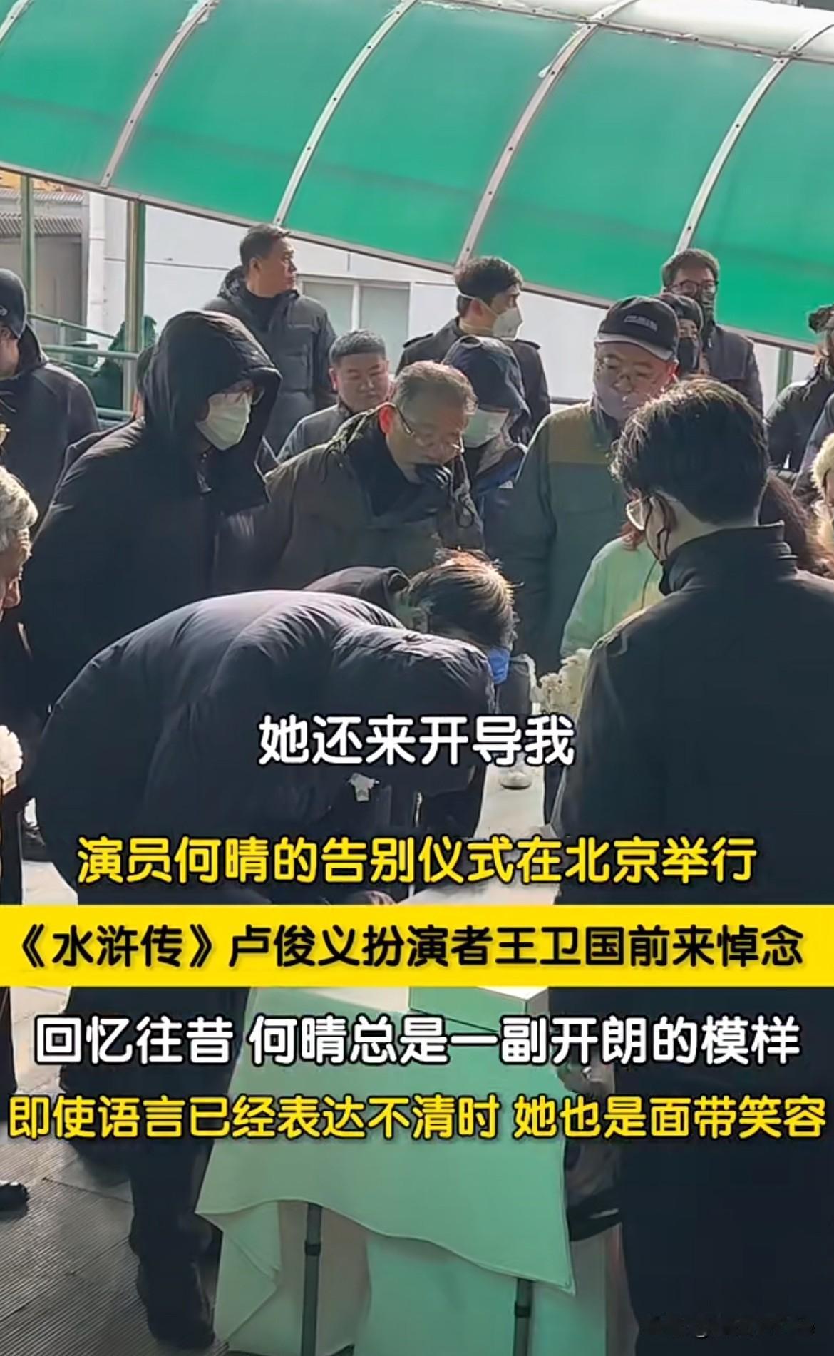 12月15日,何晴告别仪式,一众亲友到场送别,《水浒传》卢俊义扮演者王卫国前来悼念,这才是真正陪何晴到最后的挚交好友! 还有不少粉丝送上花圈,望她一路走好! 昨天想到一句话,但没有分享出来,因为觉得这句话很现实很荒诞又很直冲人心! 今天看到寒冬天一众到场亲友们,想说出来 何晴一生最出名的一天,是她离开的日子! 她在这天受到了无数人的喜爱与认可,可惜她都看不到了……