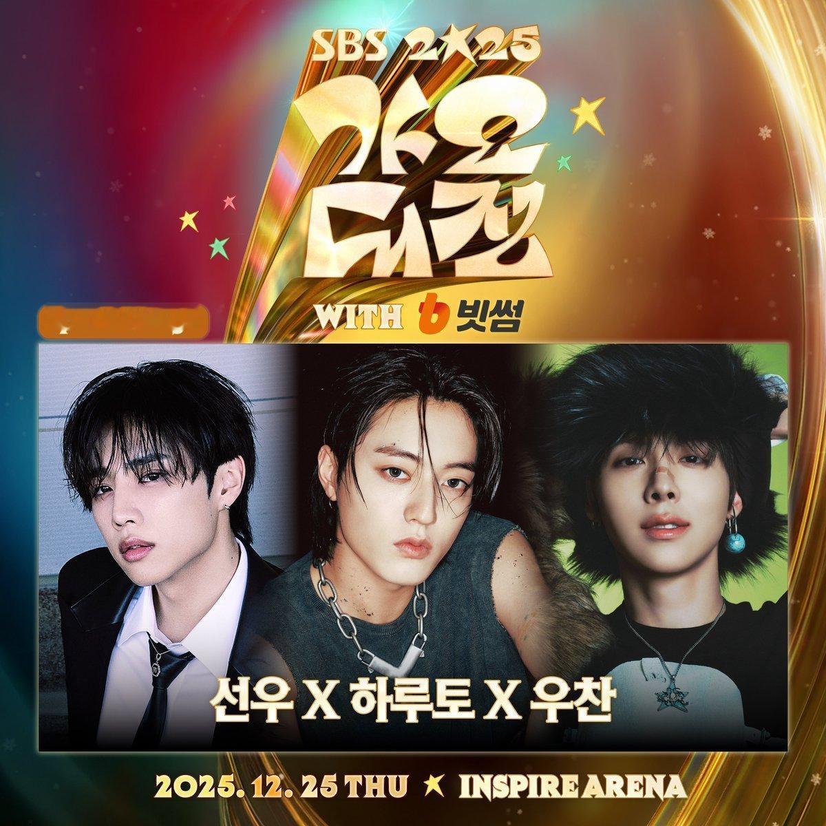 SBS《2025 歌谣大战》特别舞台+追加阵容特别舞台:崔然竣 x 郑允彩《Let Me Tell You》金云鹤 x 李沅禧 像雪一样团在一起的两人的可爱雪人金善旴 x HARUTO x 赵旴灿 准备惊喜圣诞礼物的“rapper男友”追加阵容:李泰容