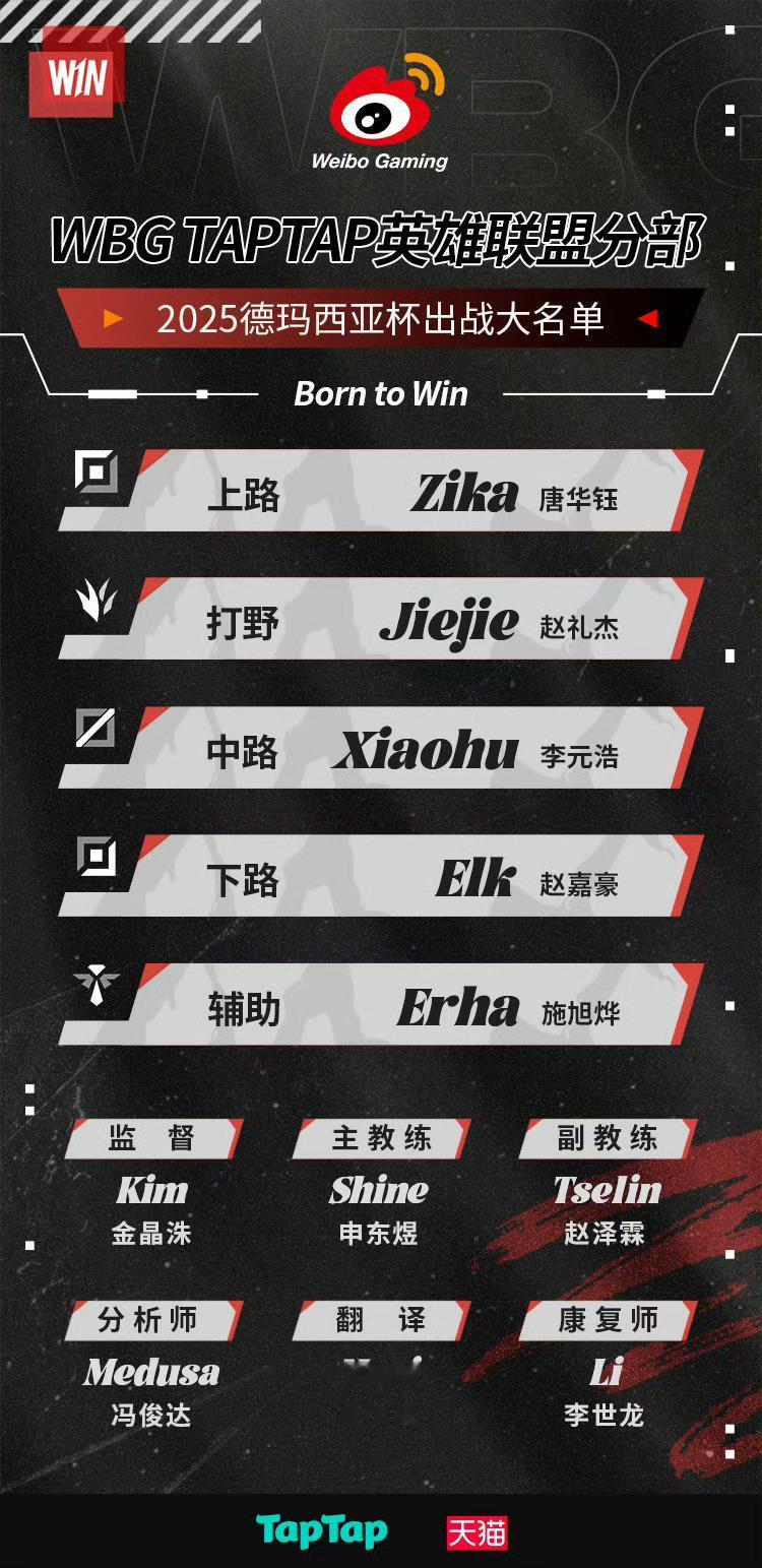 虎扑12月15日讯WBG发布2025德杯参赛名单,具体内容如下: