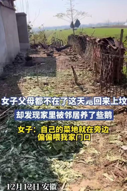 12月12日报道,安徽,女子父母都不在了,她回家上坟,发现大门口被邻居用铁丝网围住,养了一大群鹅,鹅屎糊了一地。女子非常气愤:他家菜地就在旁边,凭什么在我家门口喂鹅? 李女士(化名)趁着周末向单位请了假,拎着祭品回了趟老家,父母已经去世多年,老房子也一直空着,她这些年在外打工,一年能回来的次数屈指可数,每次都是匆匆去坟前烧点纸、磕个头,很少在村里多待,更没麻烦过谁帮忙照看房子。 可这一次,人还没进村,她就闻到一股说不上来的臭味,越往里走味道越重,心里一下子就开始不踏实。 等她走到自家门前,整个人都愣住了,原本干干净净的门口空地,被人用竹竿和铁丝围了一圈,圈里养着十几只大鹅,扯着嗓子乱叫,满地都是湿哒哒的鹅屎,墙角、门槛边到处都是,踩一脚都能粘鞋。 那股刺鼻的味道正是从这儿冒出来的,连自家大门都被挡得不太好推,李女士站在门口,火一下子就窜上来了,好好的家,怎么成了别人家的养殖场。 她压着火气在村里打听,问了一圈才知道,这些鹅是隔壁一位大娘养的,按亲戚关系算,还是她姑父的亲大嫂。 李女士找到人后,尽量让自己语气平缓些,说这地方是自家门口,弄得又脏又臭,实在不合适。 可那位大娘一点不好意思的样子都没有,只是随口回了一句,说不知道她这么早回来,反正地方空着,养点鹅也不碍事。 这话一出口,李女士心里的委屈和怒气一下子压不住了。 她直说这是自家的宅基地,就算常年没人住,使用权也在她们家,别人要用也得先问一声。 她越说越难受,想到父母在世时,把门前收拾得干干净净,和邻居相处也一直和气,从没为这些事红过脸。 如今人不在了,房子空着,就被人这么占着用,谁心里能舒服,她反问对方,自家旁边明明有菜地空着,为啥非要跑到她家门口养鹅。 可不管她怎么说,那位大娘要么装没听见,要么就一句“养都养了,也没啥大不了”,完全不觉得自己有问题。 李女士看着满地的鹅屎,想到父母的坟就在不远处,自己回来连个干净地方站着祭拜都没有,越想越难受。 她拿出手机,把铁丝网、鹅群、脏兮兮的地面一一拍下来,心里堵得不行,觉得这不仅是占地方,还脏乱差,时间长了谁知道会不会招来蚊虫、出问题。 后来村里的亲戚听说了这事,过来从中劝说,告诉那位大娘,人家父母不在了,房子是个念想,把鹅养在人家门口确实不合适。 大娘大概也怕事情闹大,面子上挂不住,最后算是认了理,当天就找人把围栏拆了,把鹅赶回自家菜地旁边,还简单把门口清理了一下。 事情算是平息了,可李女士心里始终不太痛快,她又自己动手把门口彻底打扫、消毒了一遍,看着恢复原样的家门口,心里说不出的复杂。 回去后,她把这件事发到了网上,很多网友替她抱不平,说空着的宅基地也是别人的合法财产,不能因为没人住就随便占用,也有人感叹邻里相处最基本的还是要尊重。 其实这事本身不算多大,但问题就在于有没有把别人的权益当回事。 法律上也说得很清楚,宅基地使用权归个人所有,哪怕房子长期空着,别人未经同意也不能私自占用。 李女士也说,以后会多回老家看看,也提醒那些常年在外、老家有房有地的人多留个心眼,遇到这种事别一味忍着,能协商就协商,不行就依法维护自己的权益。 邻里之间抬头不见低头见,讲点分寸、守点规矩,才能相处得久,不然一时图方便,最后只会把情分和底线一起耗光。   对此你怎么看?