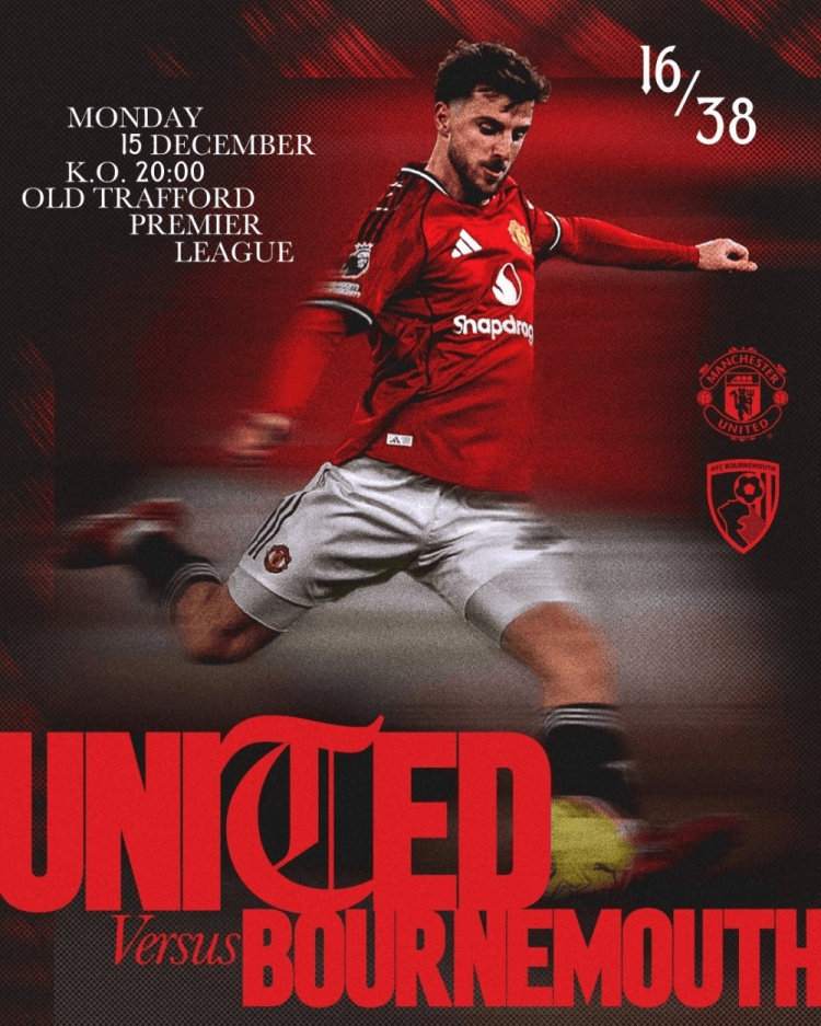 虎扑12月15日讯北京时间明天凌晨4点,英超联赛第16轮,曼联主场对阵伯恩茅斯。