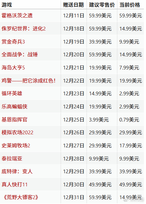 小道消息, Epic连送活动的所有神秘游戏,传闻还将再送出14款游戏(图2),按原售价计算总价值接近300美元(约2116元)。如果这清单是真的,那就真是E 父了,虽然几个热门游戏我都买过。epic 免费游戏epic
