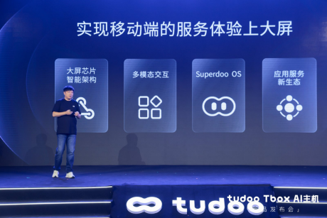 曹玮介绍,tudooTboxAI主机以“让服务体验回归大屏”为核心理念,通过全新pad级大屏芯片智能架构、多模态交互、自研AIOS操作系统与开放应用生态等四大核心技术,尝试解决当前电视大屏“开机率低、使用割裂、互动缺失”等核心痛点。