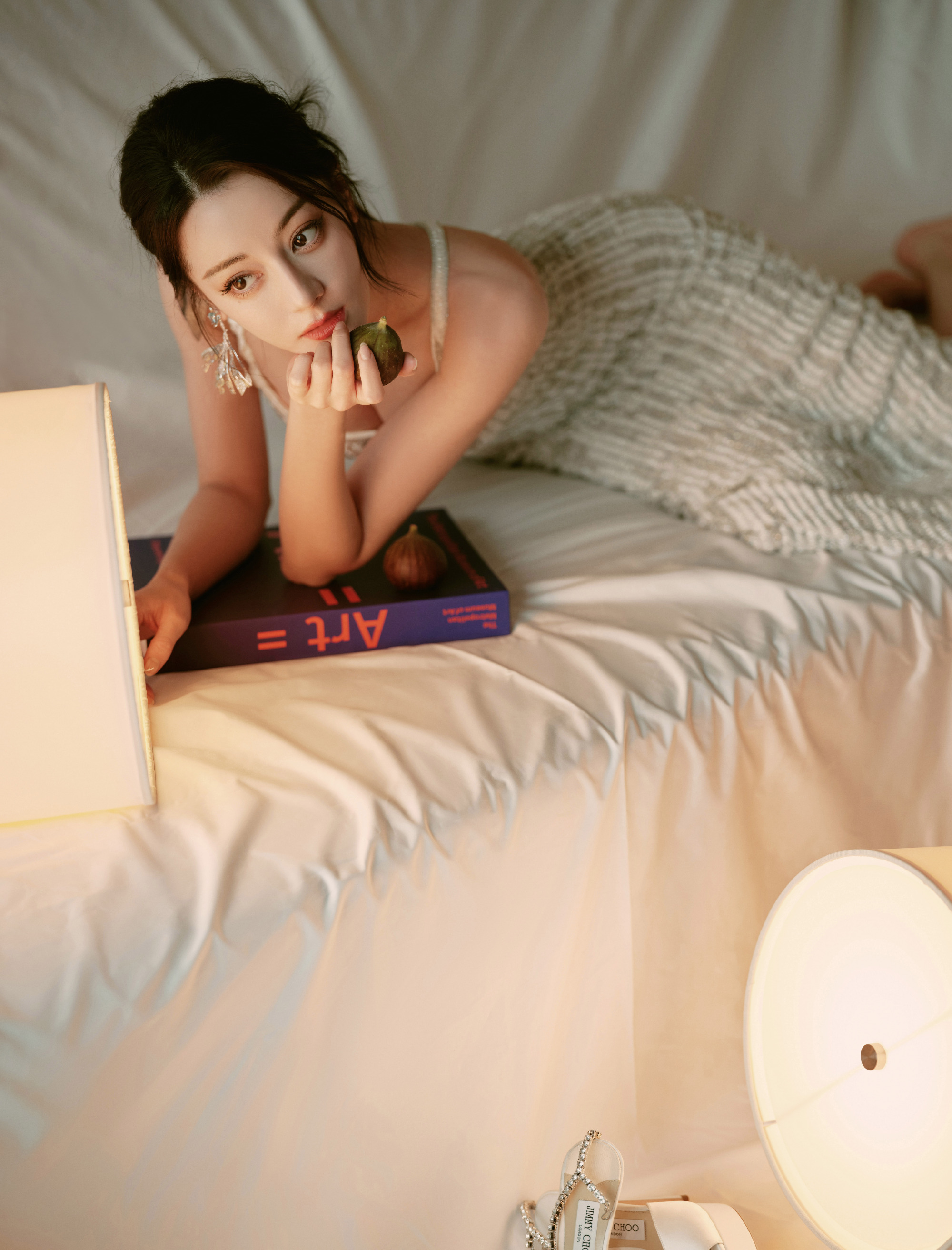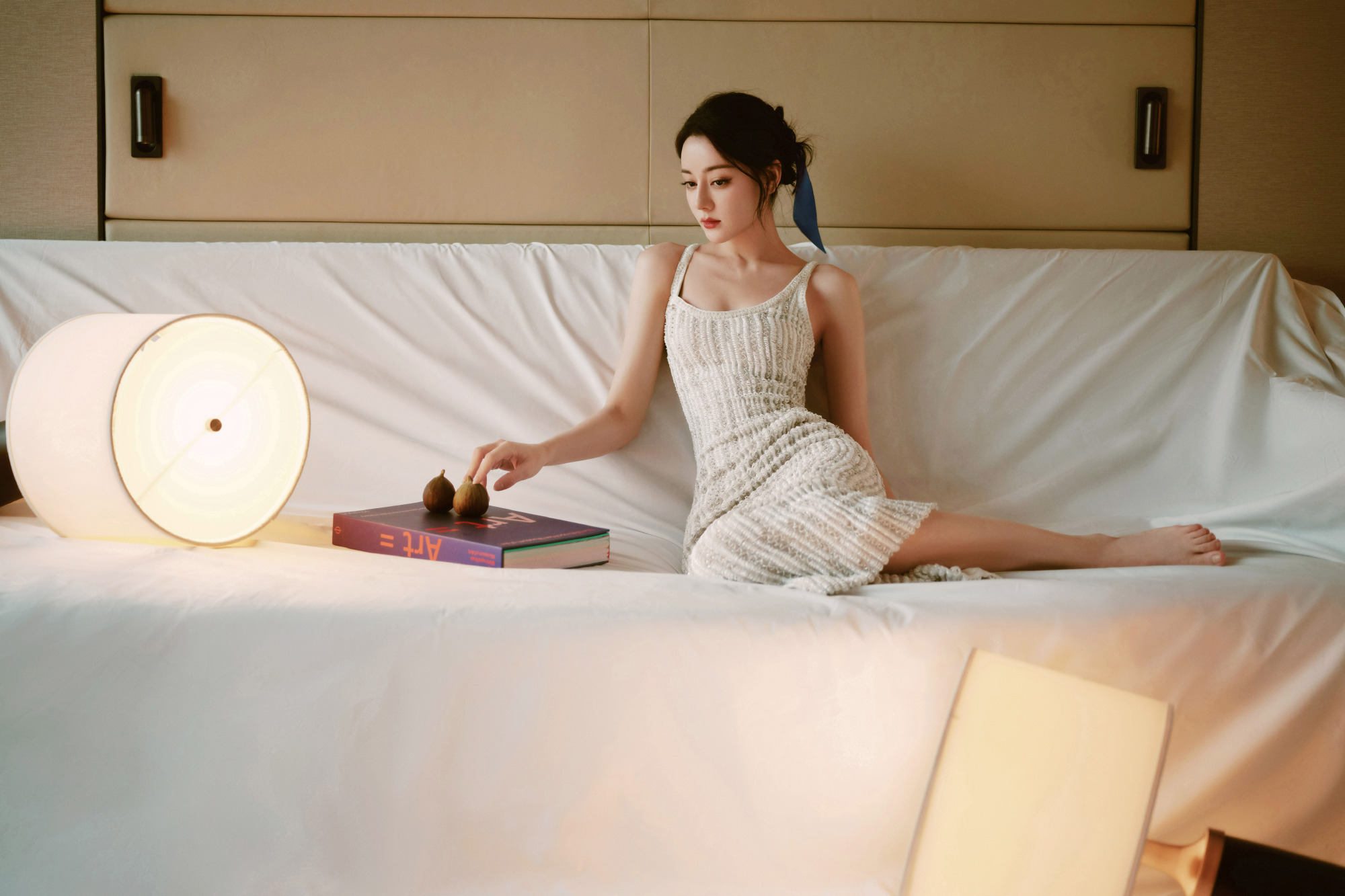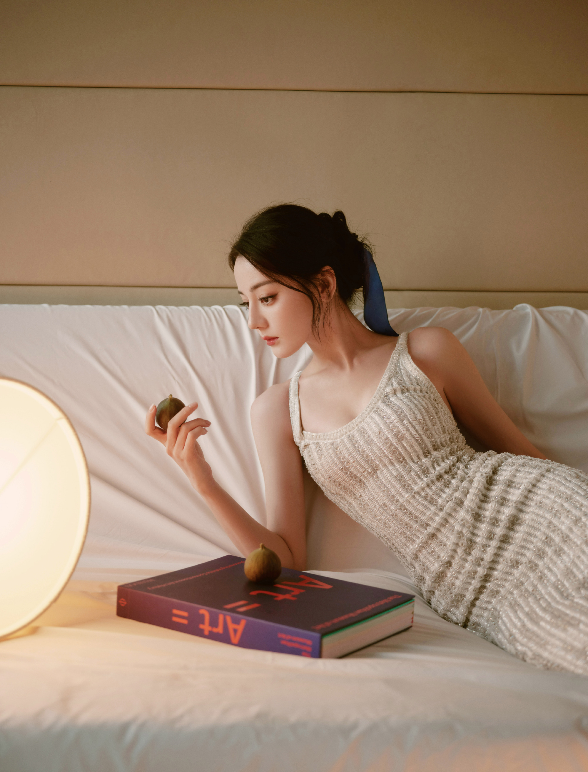 迪丽热巴,轻盈白裙,温柔甜美。迪丽热巴