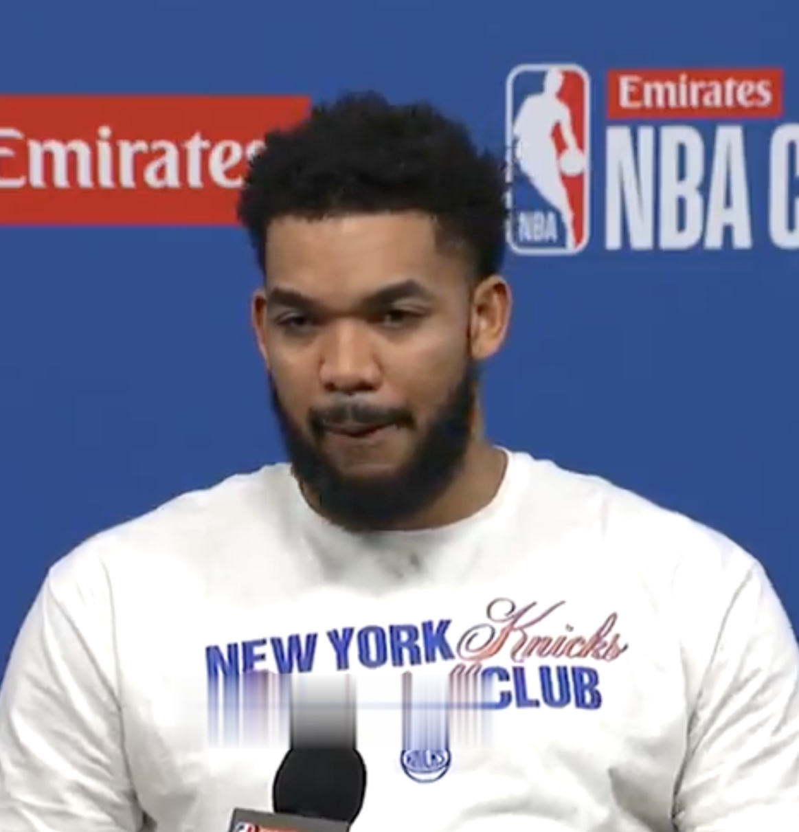 尼克斯球员卡尔-安东尼-唐斯接受了记者采访。