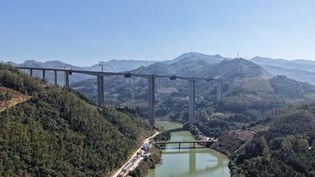 11月28日,师丘高速公路控制性工程——南盘江特大桥主桥成功合龙,如长虹卧波,飞越天堑,标志着这条发展大通道建设取得决定性进展。